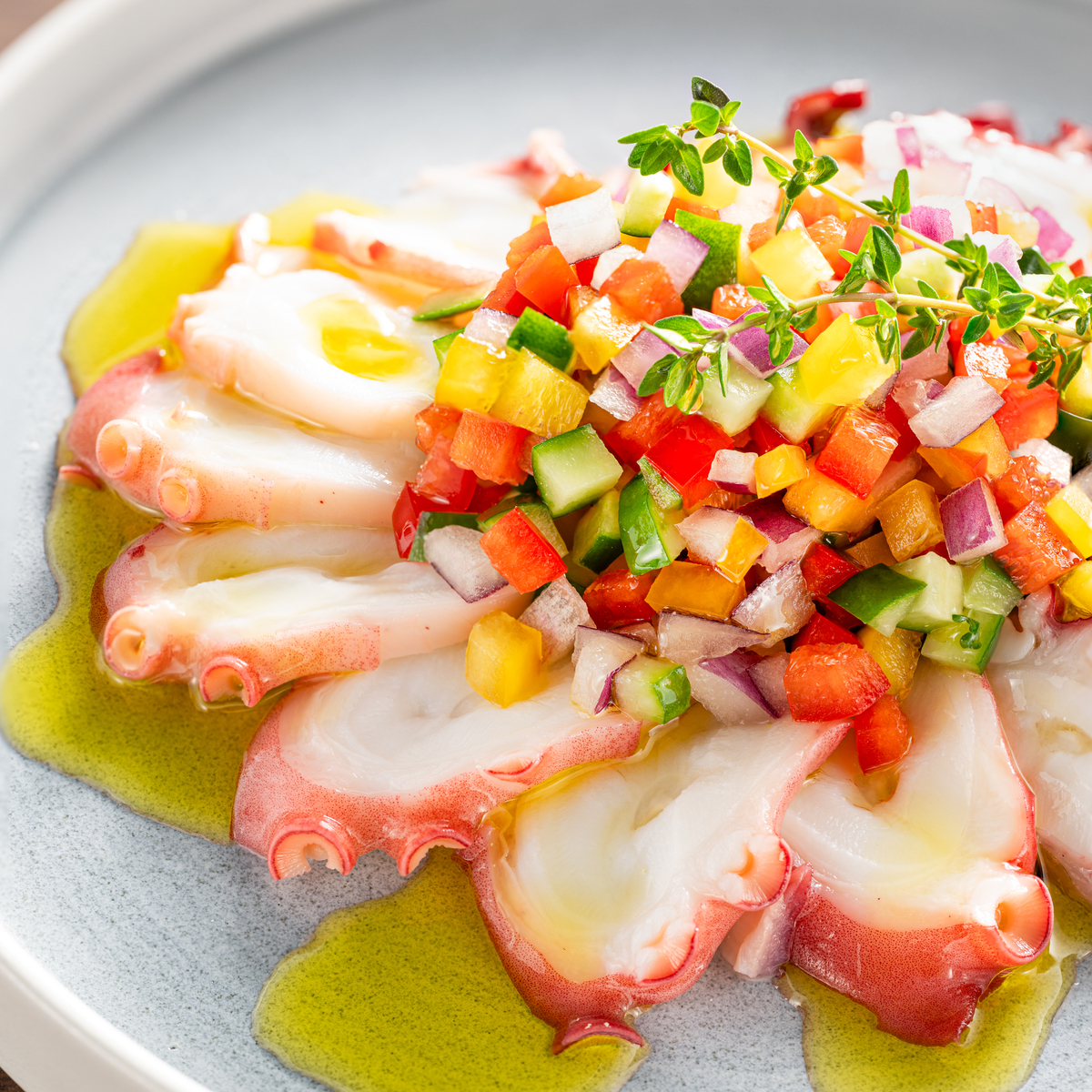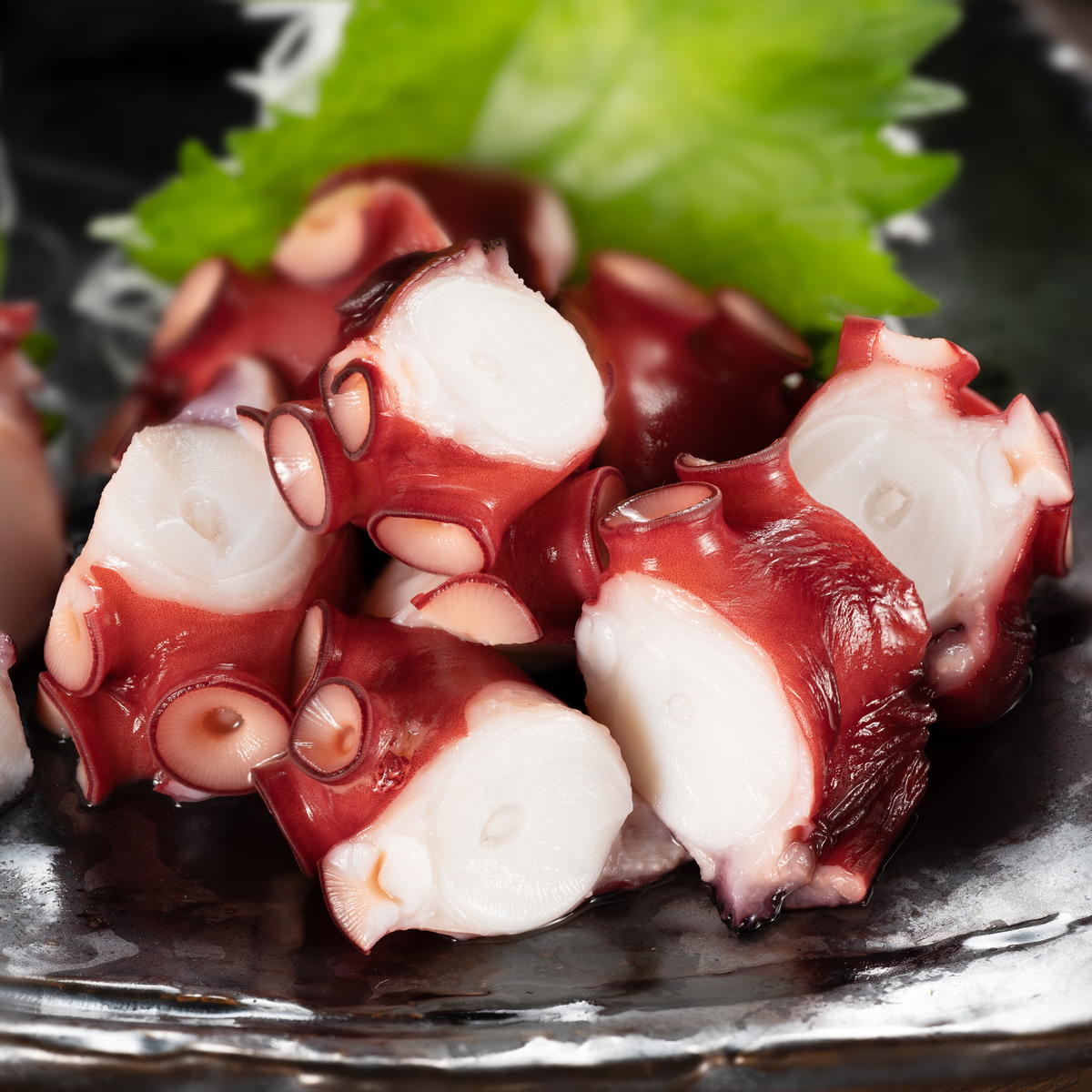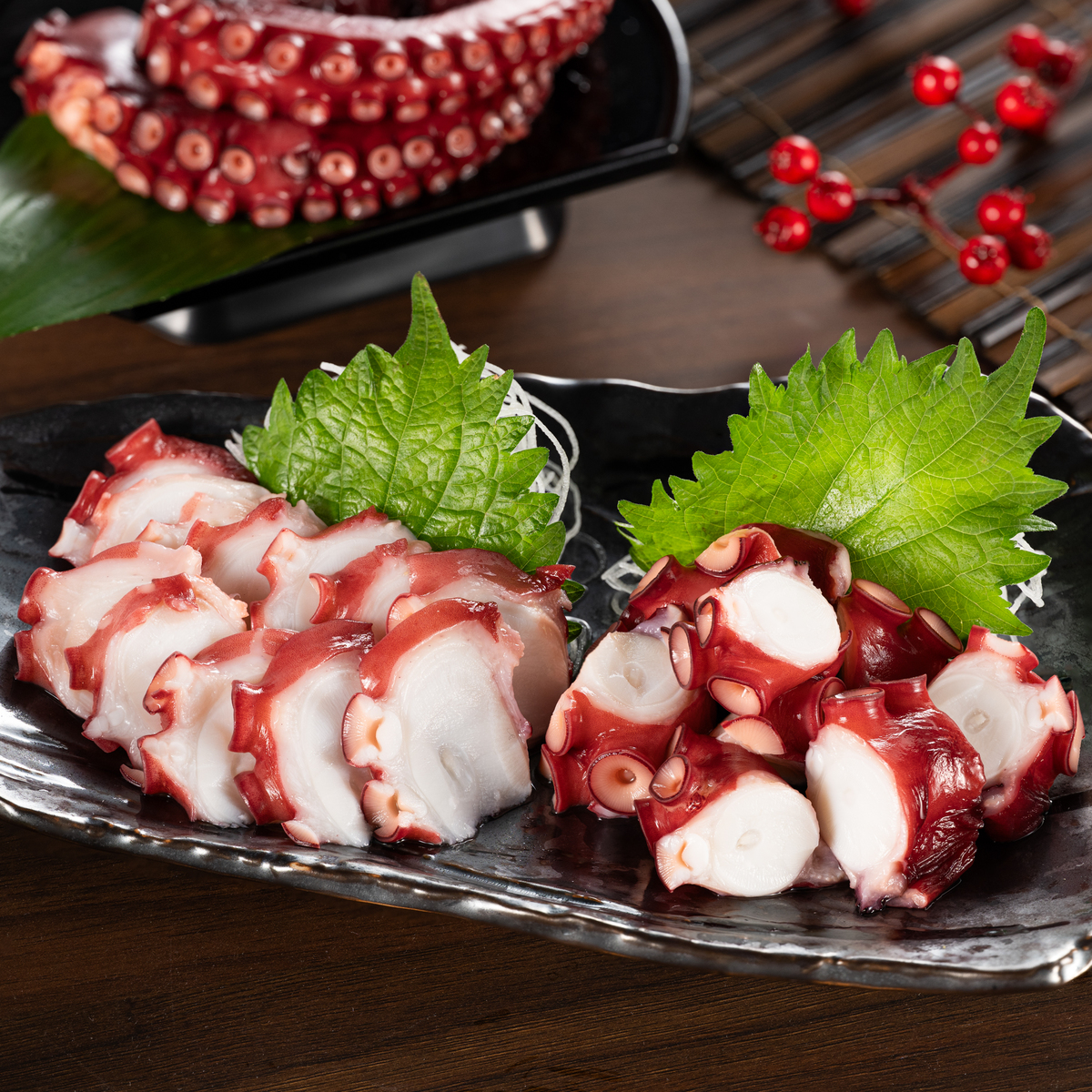 相性の良い昆布だしを使用。たこの加工において最も重要な「塩もみ」(身質の引き締め)と「炊き」(ボイル加熱)のバランスで絶妙な食感を作り出しています。食べたい時に解凍するだけの食べきりサイズの便利なパックで、おせち料理の一品としても重宝します