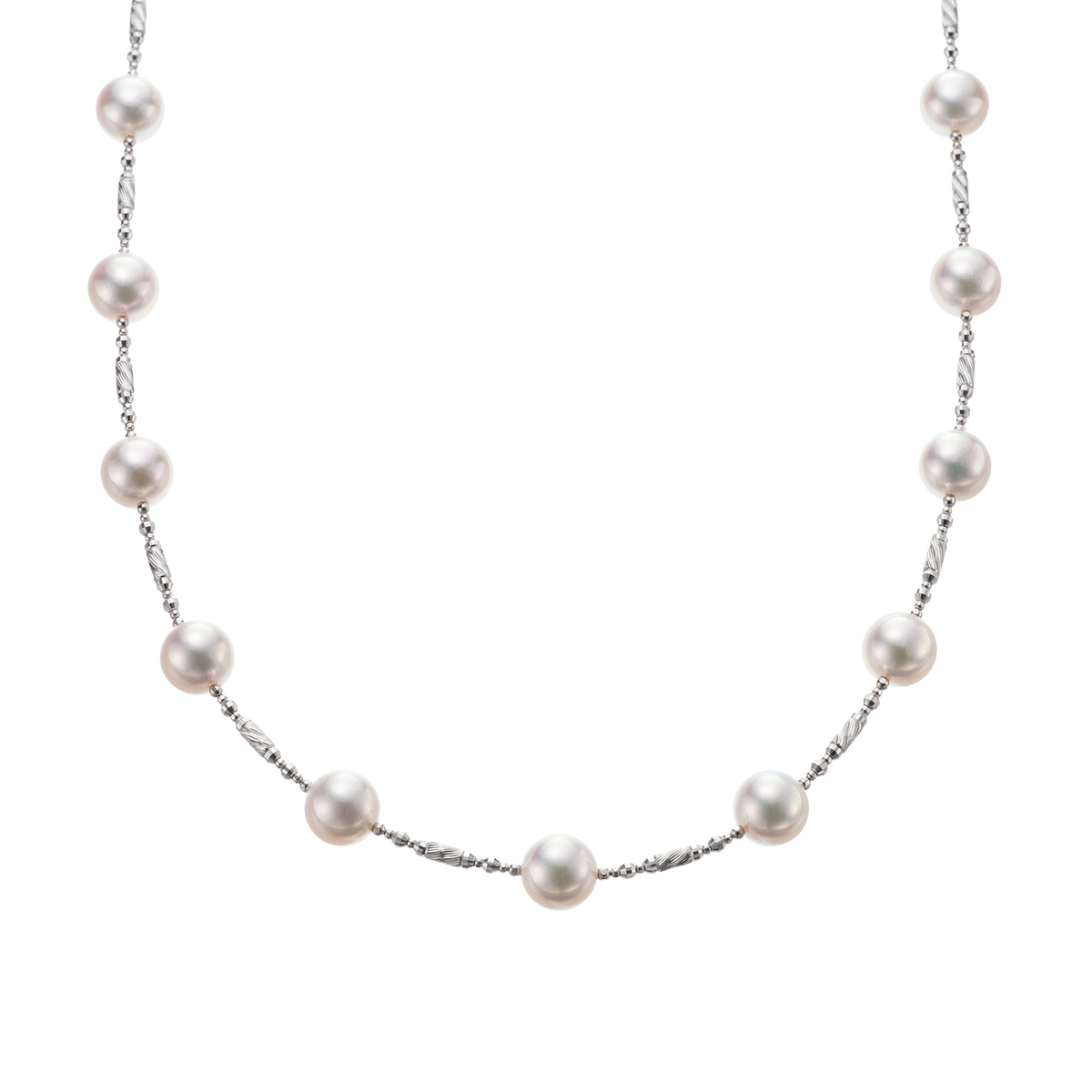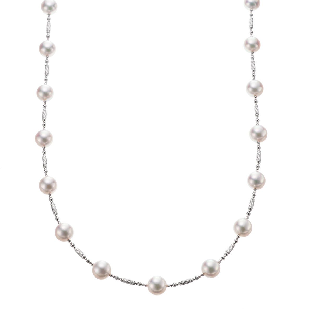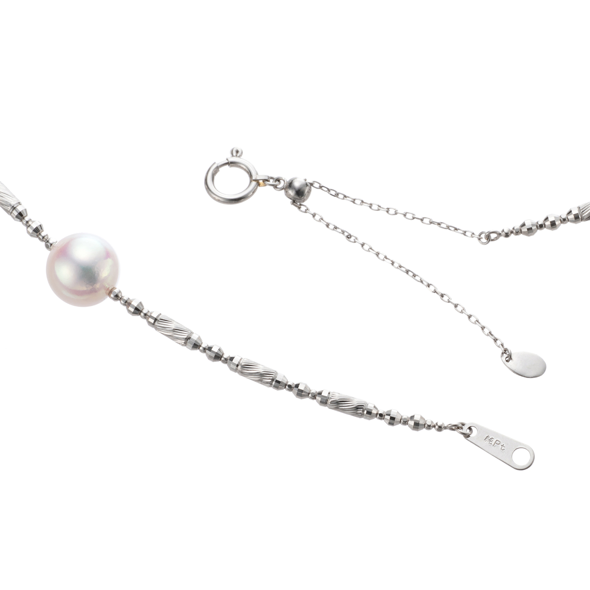 8.0mmUPのテリの美しい珠を、純プラチナで仕立てた華やかで上品なデザイン。フォーマルではもちろん、カジュアルなシーンにも活躍します。人生の大切なシーンをはじめ、いつの時代でも愛される真珠の輝き。親から子へ、孫へと受け継いでいけるジュエリーです