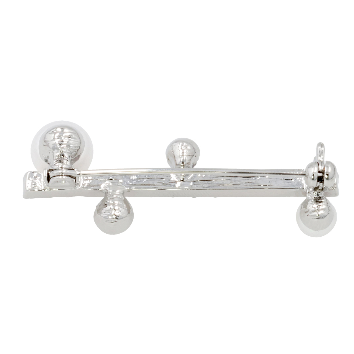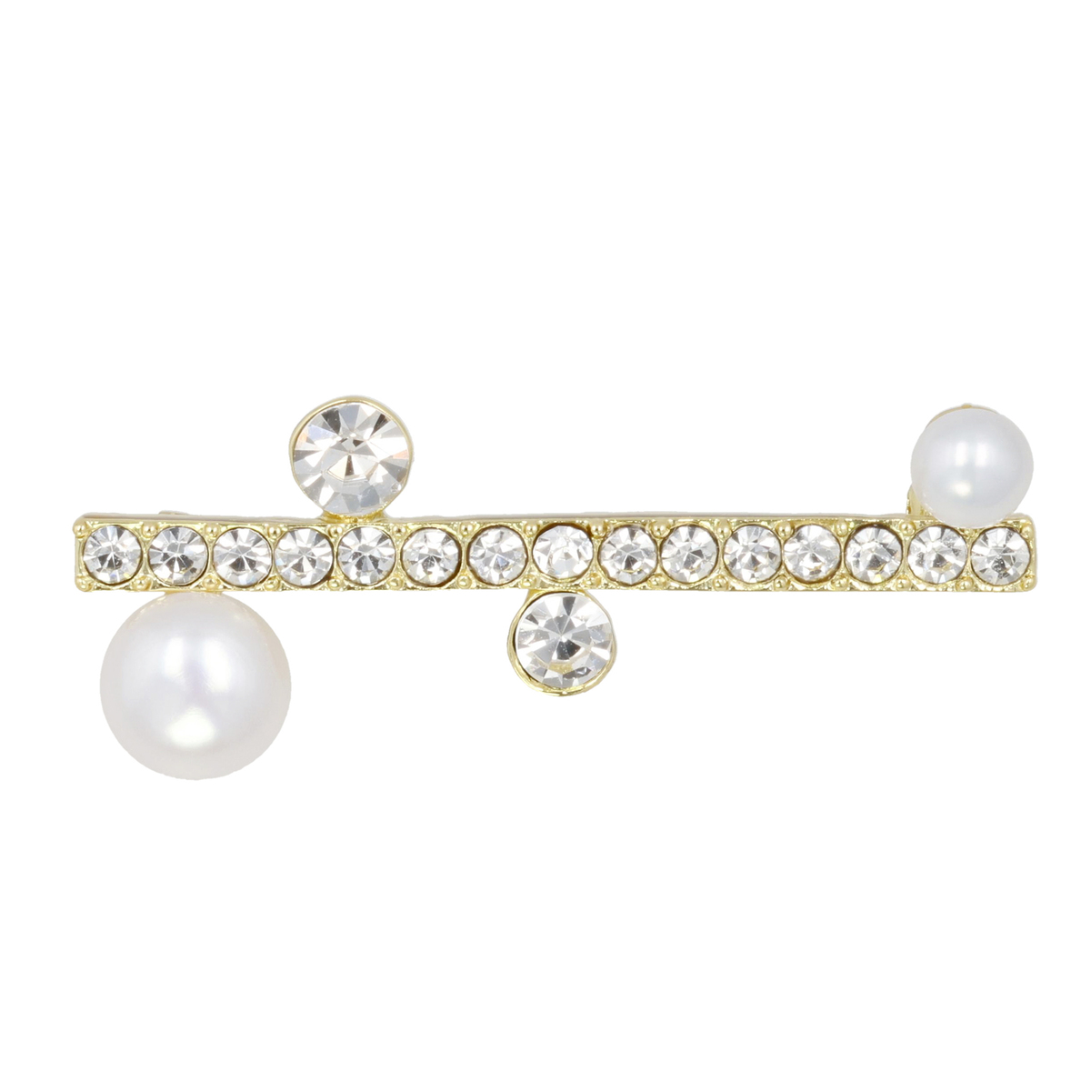 両端にあしらった淡水パールが、クラシカルな雰囲気と柔らかな光沢をプラス。洗練された輝きと上品な存在感で、フォーマルにもカジュアルにも華やぎを添えるブローチです