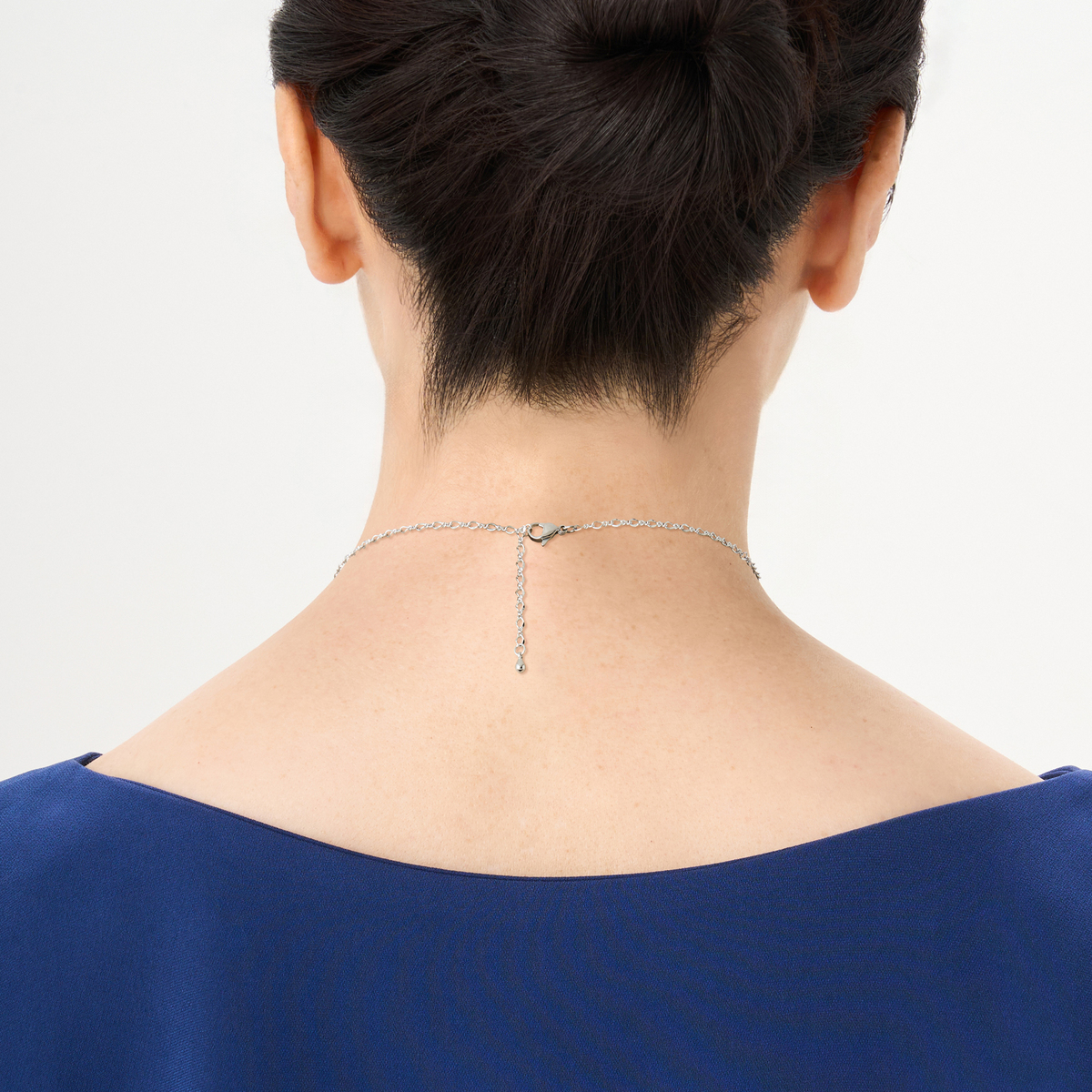 バチカン部分には小粒のラウンドカットジルコニアをあしらい、繊細な輝きをプラス。肌馴染みの良いフィガロチェーンは長さ調整が可能で、スタイルに合わせて自在にアレンジできます