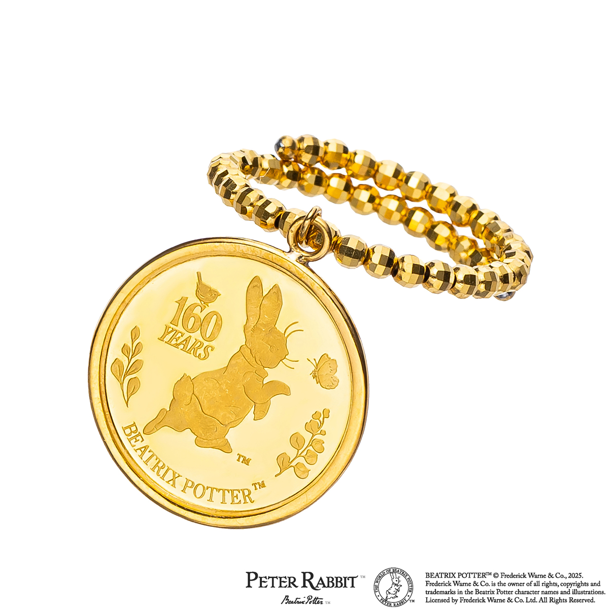 メダルは英国王立造幣局製造。今回のメダルに使用されている、160 YEARSのロゴと一緒にデザインされたイラストは、「ピーターラビットのおはなし」の初版本の表紙に使われているものです。気分によってつける指を変えられる9〜20号対応のフリーサイズ。プレゼントとしてもおすすめです