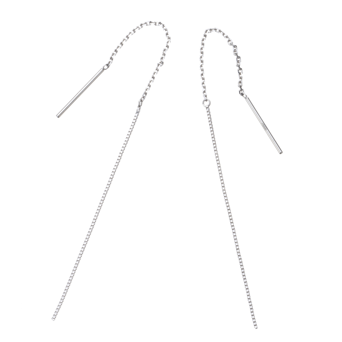 ベネチアンチェーンのアメリカンピアス。長さのあるIラインがお顔まわりをすっきりと演出します。シンプルながらも大変スタイリッシュなデザインで、その揺らめきと純プラチナのしっとりとした輝きをお楽しみいただけます