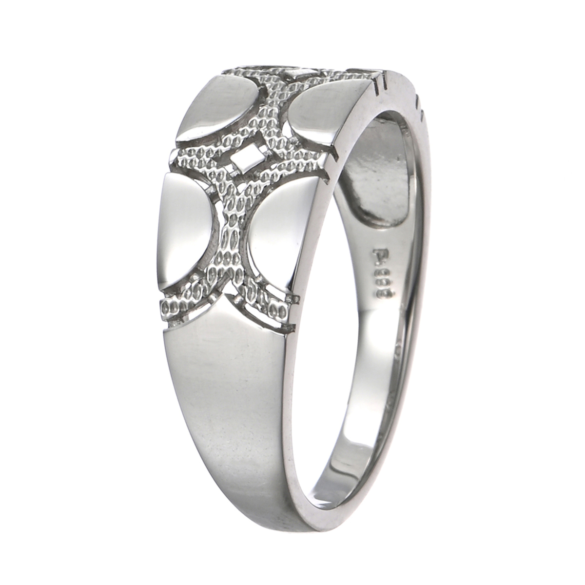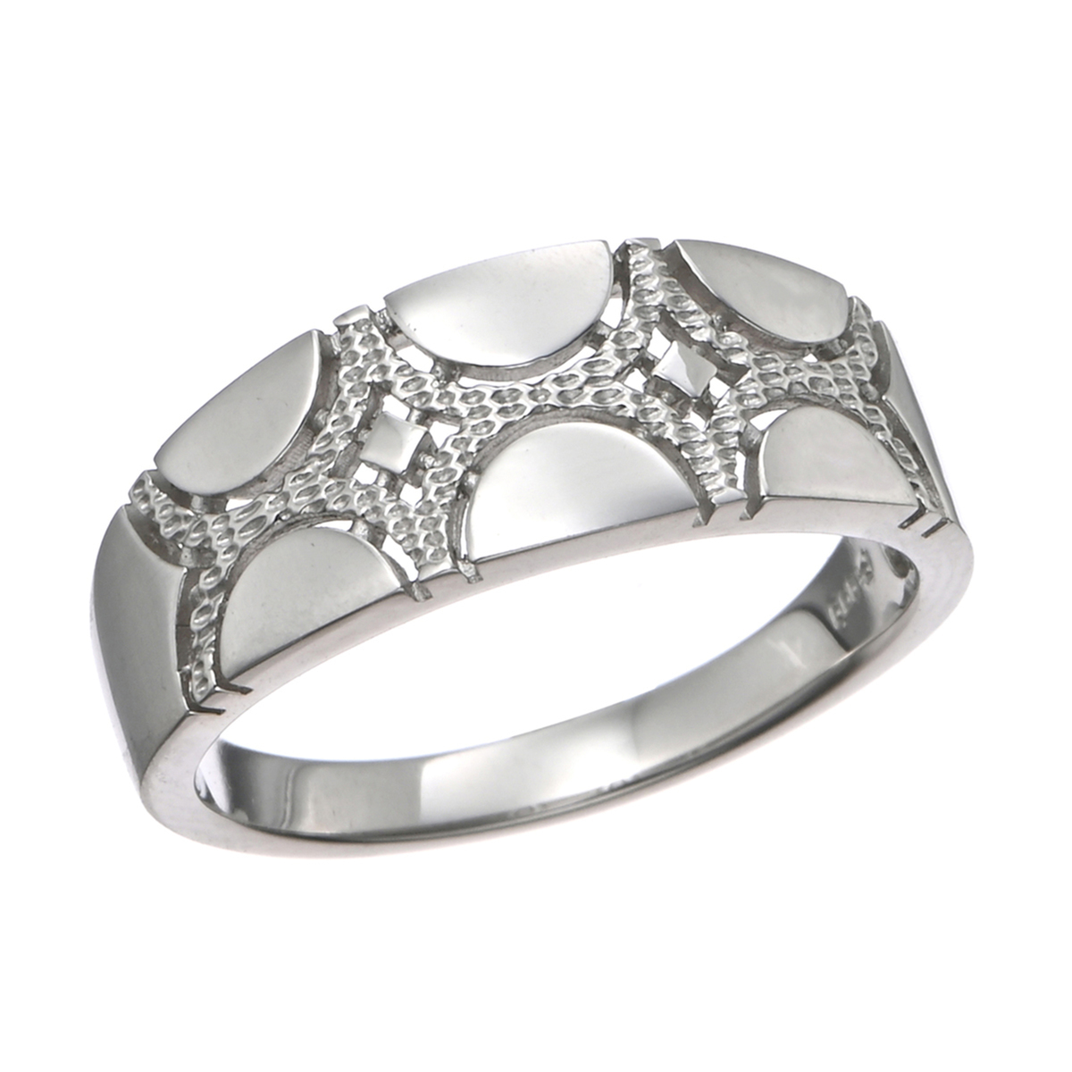 優美な存在感溢れる純プラチナリング。菱形状に施した細かなテクスチャーが、まるでダイヤモンドをあしらったように煌びやかに輝くデザインです。鏡面の磨き上げられた部分からは、純プラチナのしっとりとした輝きが放たれます