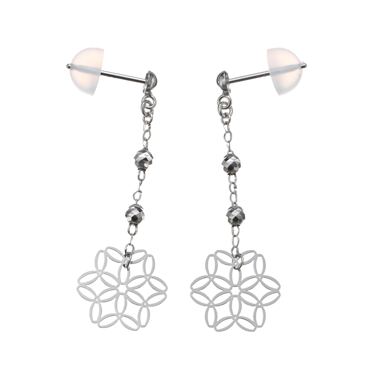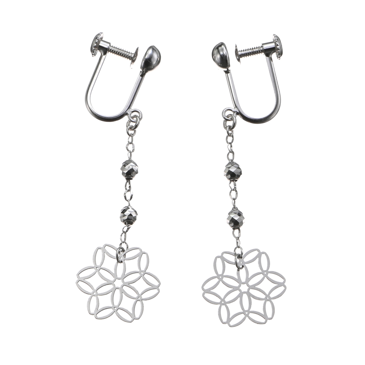 毬模様を施したようにも見える、和テイスト漂うイヤリングまたはピアス。程よいボリュームと存在感で、お顔まわりに華やかなアクセントを添えてくれます