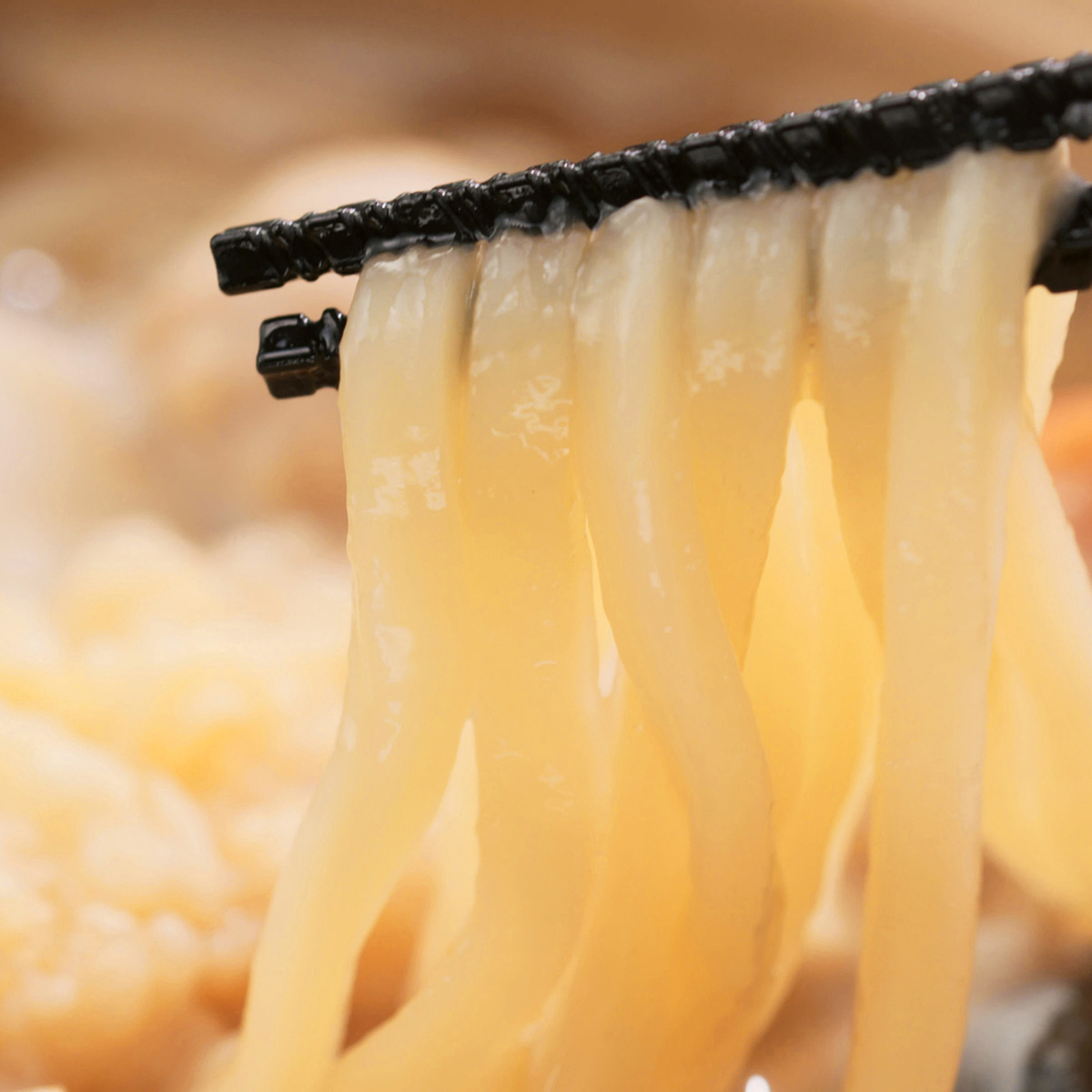 本場の味をご賞味いただけますように、昔ながらの手打ち製法を機械で再現。生地をまんべんなく練って延ばす工程を繰り返し、さらに熟成させることで、強いコシとモチモチした弾力のうどんに仕上げました