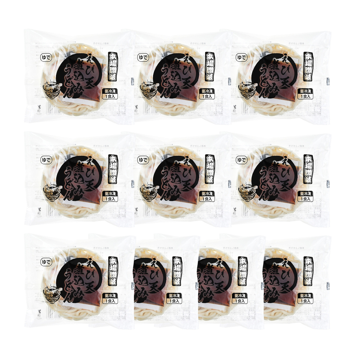 [アレルギー物質特定原材料8品目] 小麦、乳、えび [内容量] 275g(めん200g、具45g、つゆ30g)×10食 [賞味期限] 2026年3月28日 [保存方法] 開封前:冷凍(ー18℃以下)で保存してください 開封後:お早めにお召し上がりください [お召し上がり方] 1.お鍋に300mlの水を入れ、沸騰させてください(水量はお好みにより加減してください) 2.沸騰しましたら凍ったままの具付きめんを、具を上にしてお鍋に入れてください 3.煮立ちましたらつゆを入れ、再沸騰しましたら出来上がりです 4.火を止めて器に移して、お召し上がりください(調理時間の目安は具付きめんを入れてから約4分です) ※必ず沸騰したお湯の中に凍ったままの具付きめんを入れ調理してください ※調理時間は鍋の大きさ、ガスの火力等により多少異なりますのでご注意ください ※レンジ対応ではありません(レンジで解凍した場合、味・品質が変わります) ※調理の際、熱湯を使用しますのでやけど等にご注意ください ※外袋に空いている穴は破裂を防ぐための空気穴です [注意事項] ※ご家庭の冷凍庫は扉の開閉の度合いにより温度変化が大きく、品質劣化の原因となりますのでご購入後は賞味期限内であってもなるべくお早めにお召し上がりください ※本製品に使用しているわかめは、「かに」の生息域で採取しています [原料原産地] めん〔小麦粉(小麦(国産))〕 [原産国] 日本 [原材料] めん〔小麦粉(小麦(国産))、食塩〕、具〔えび天ぷら(衣(小麦粉、でん粉)、尾付きむきえび(えび、食塩)、揚げ油(なたね油))、とり団子、味付けしいたけ(しいたけ、砂糖、しょうゆ、食塩)、 油揚げ、焼麩、わかめ/豆腐用凝固剤、調味料(アミノ酸等)、膨張剤、リン酸塩(Na、K)、乳化剤、着色料(クチナシ、パプリカ色素、紅麹)、酸化防止剤(V.E)、pH調整剤〕、つゆ〔しょうゆ、砂糖、たん白加水分解物、米発酵調味料、食塩、かつおエキス、こんぶエキス、酵母エキス、魚介パウダー/調味料(アミノ酸等)、着色料(カラメル色素)〕、(一部に乳成分・小麦・えび・さば・大豆・鶏肉・豚肉を含む)