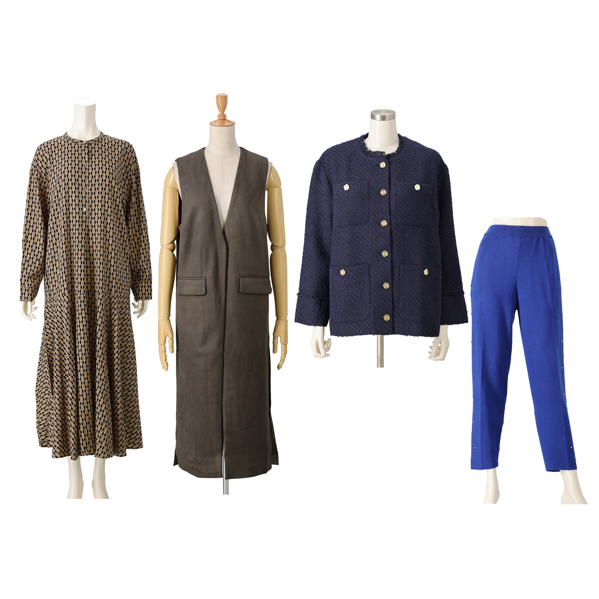 [商品内容] ・Anne Coquine シーリングスタンプボタンツイードジャケット ・Anne Coquine ストレッチフェイクスウェードロングジレ ・Anne Coquine コアスパンヤーンラインストーンニットパンツ ・Anne Coquine レーヨンミックスプリントマキシワンピース [注意事項] ※色の指定は出来ません ※商品の指定はできません