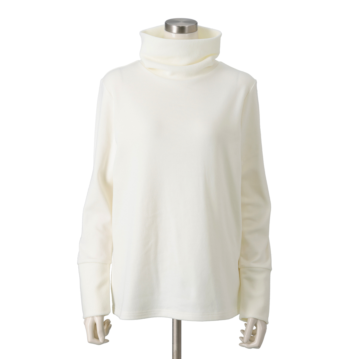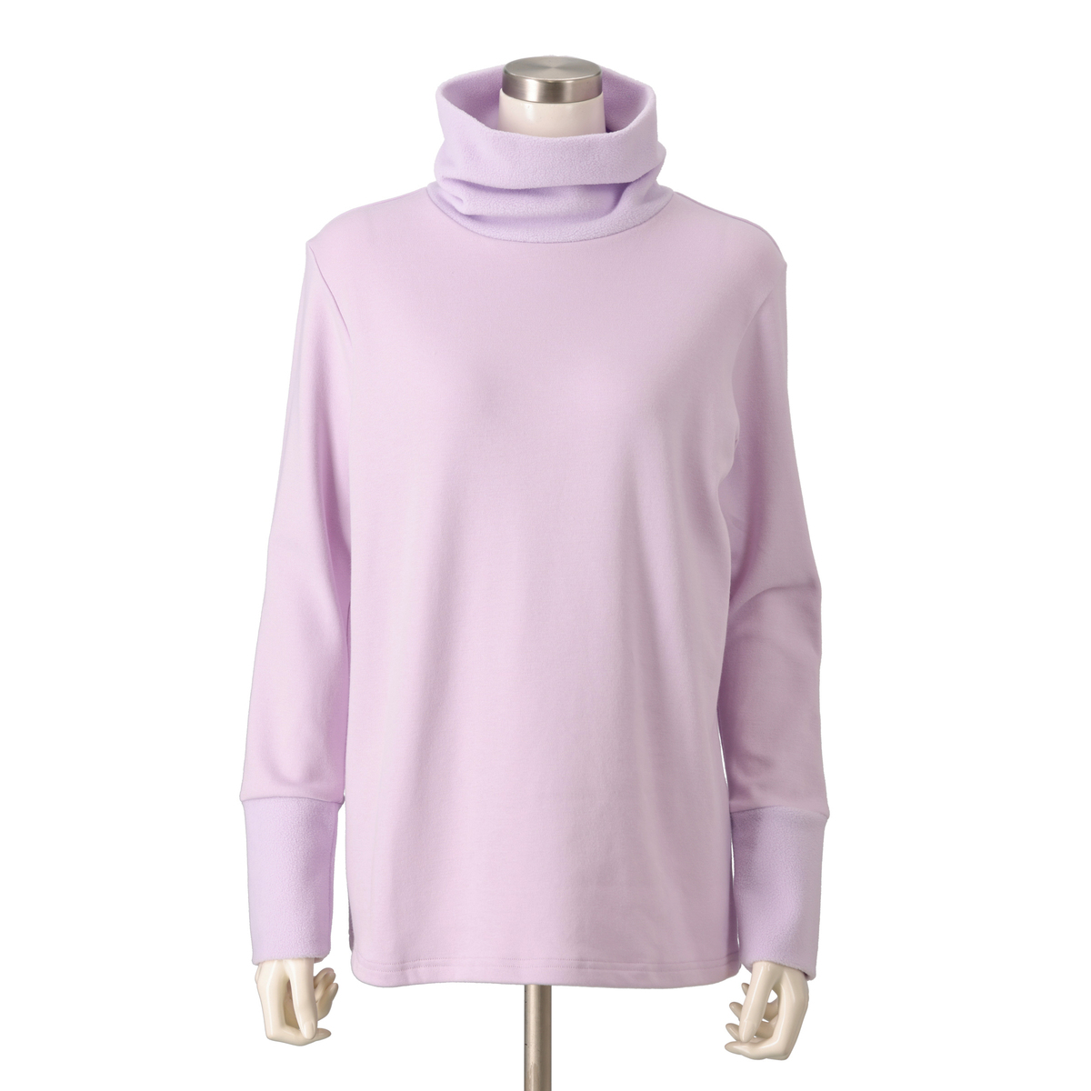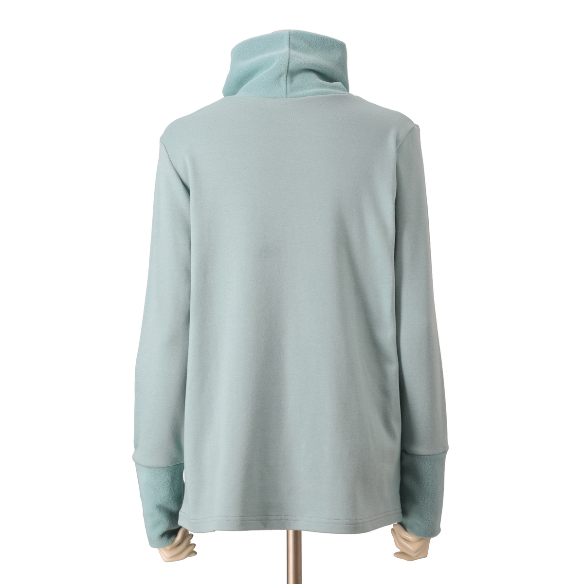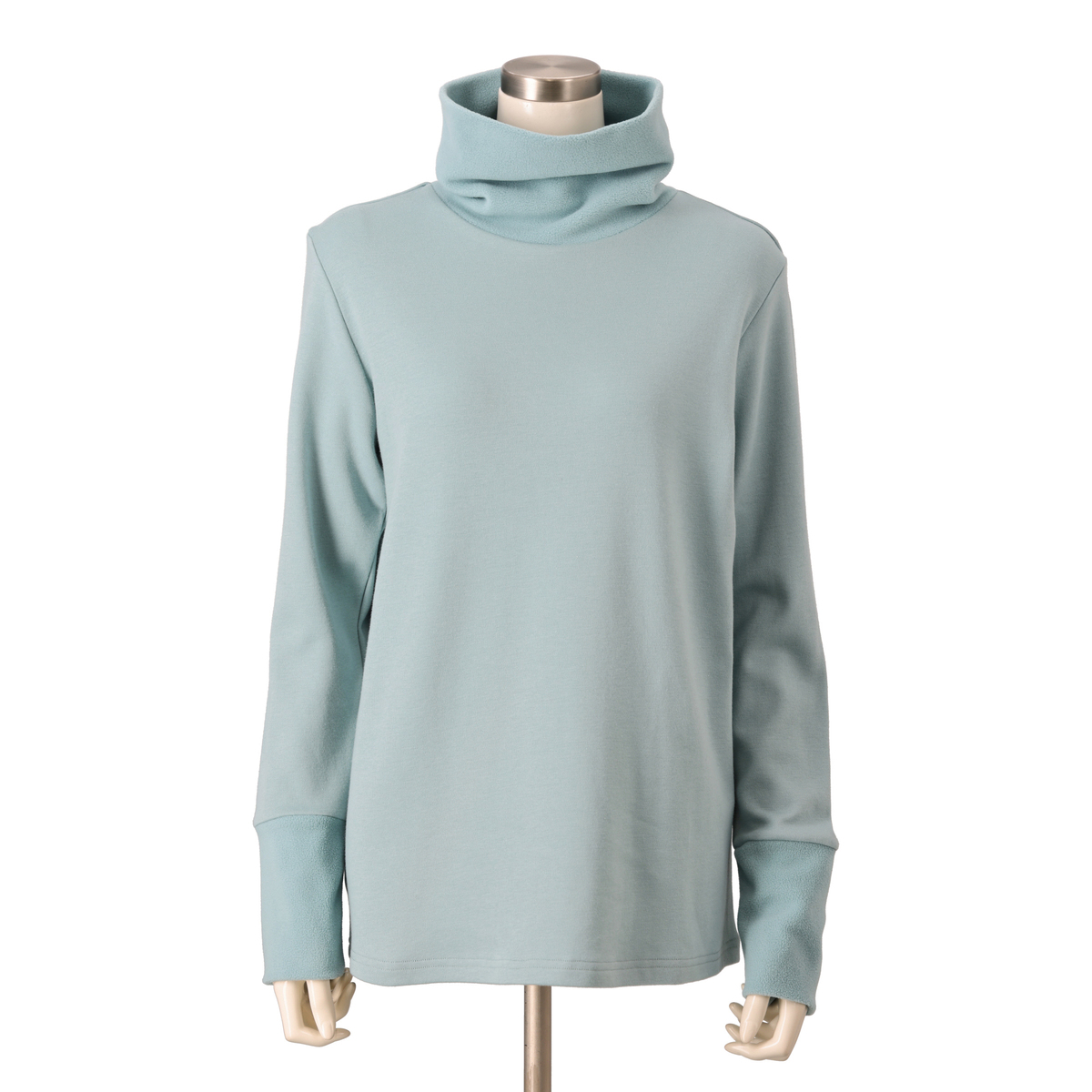 ふわっと首元を包み込むタートルネックデザイン。袖はやや長めで、フリース部分を手首でクシュっとさせたり、伸ばしてハンドウォーマーの様にしても着用できます