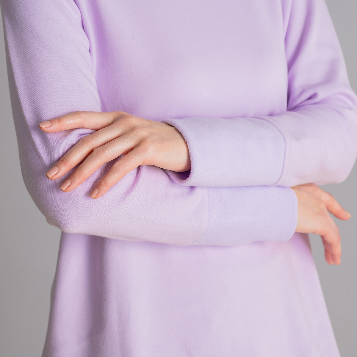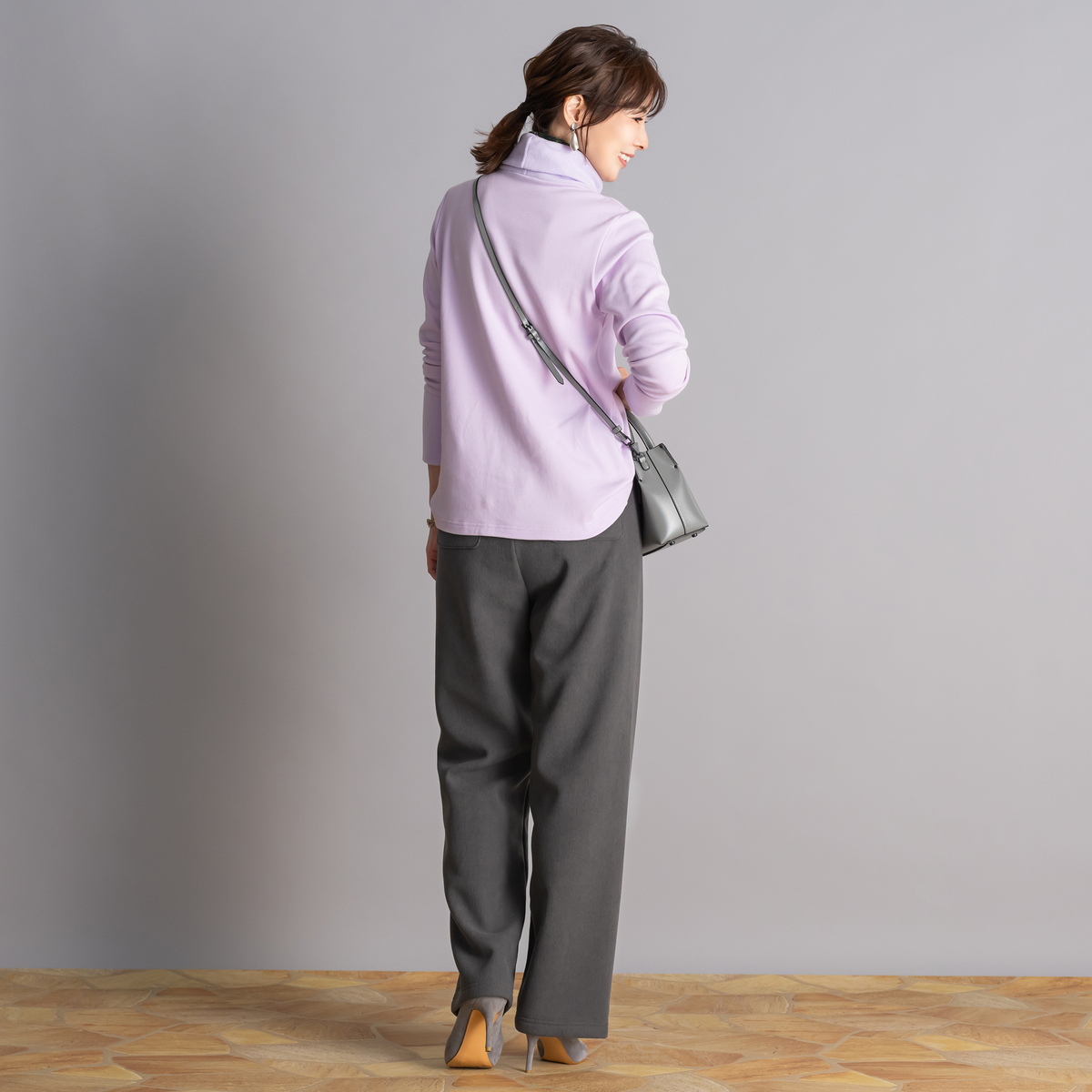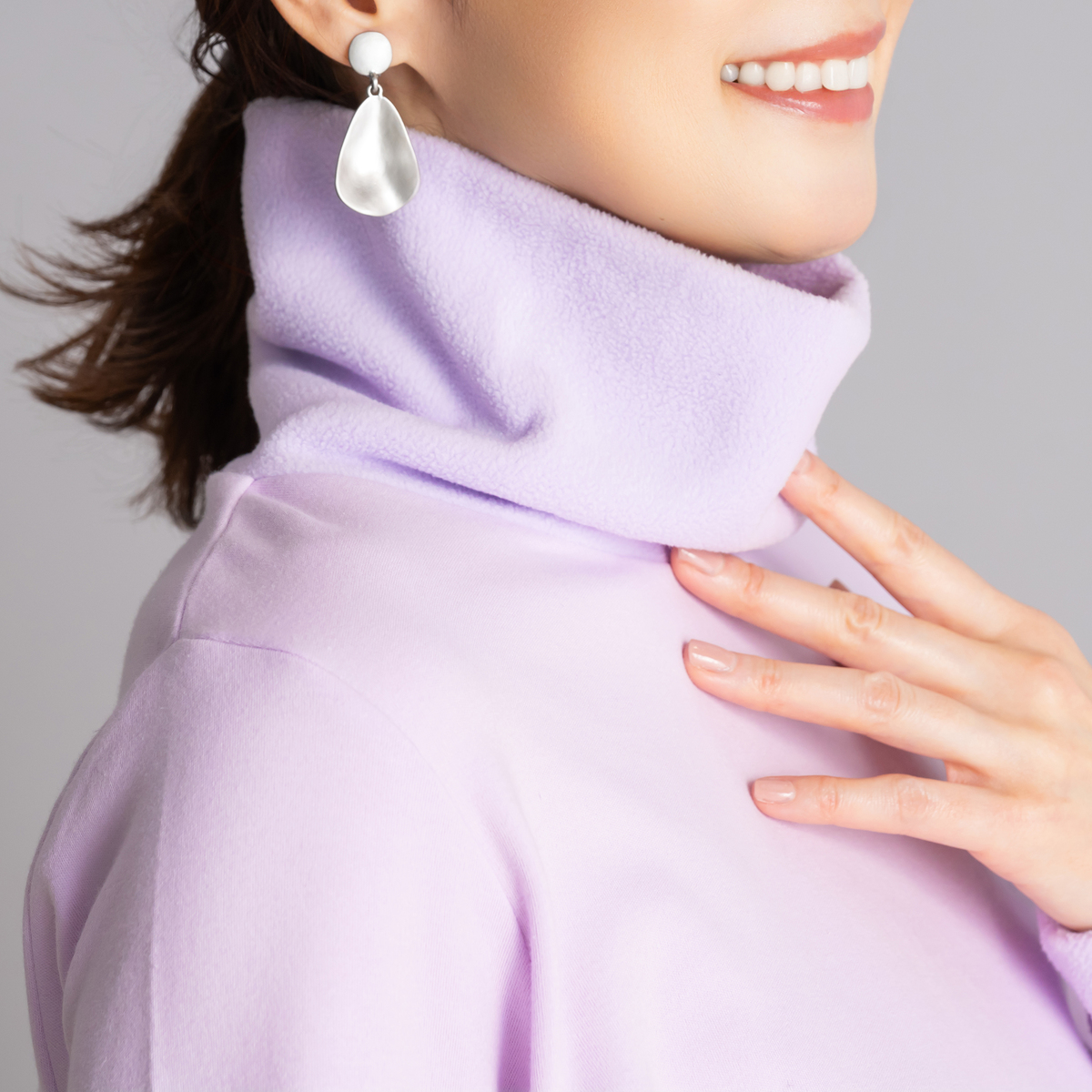 ふわっと首元を包み込むタートルネックデザイン。袖はやや長めで、フリース部分を手首でクシュっとさせたり、伸ばしてハンドウォーマーの様にしても着用できます