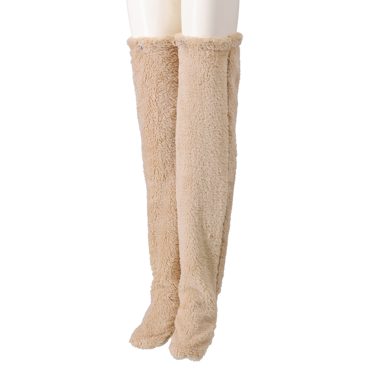 ふわふわ、モコモコのあったか素材を使用したレッグウォーマー。足先から太ももまでゆったり包み込み、素肌やタイツはもちろんパンツの上からも重ねやすい設計です