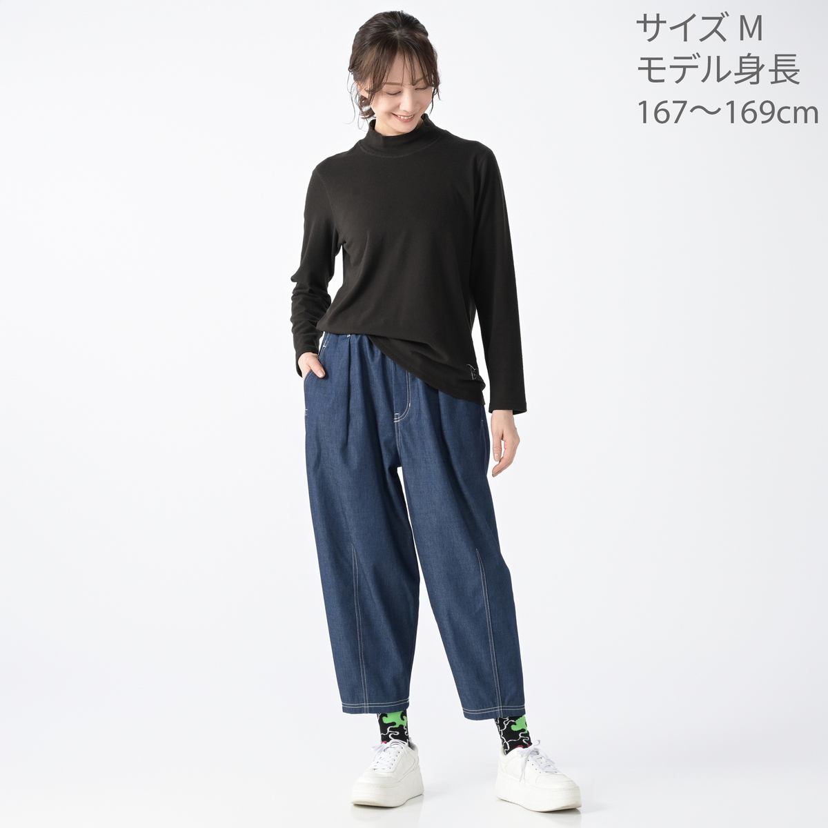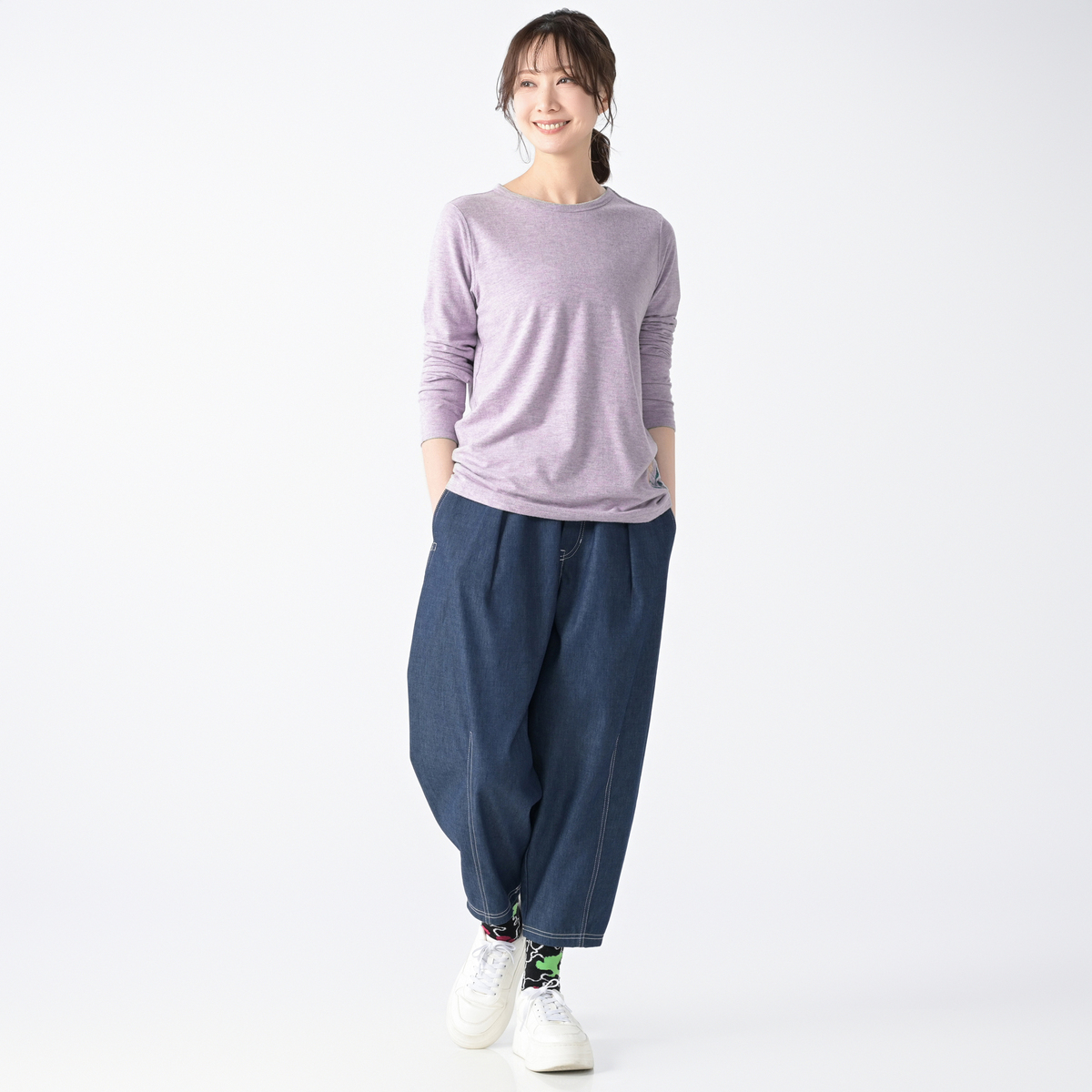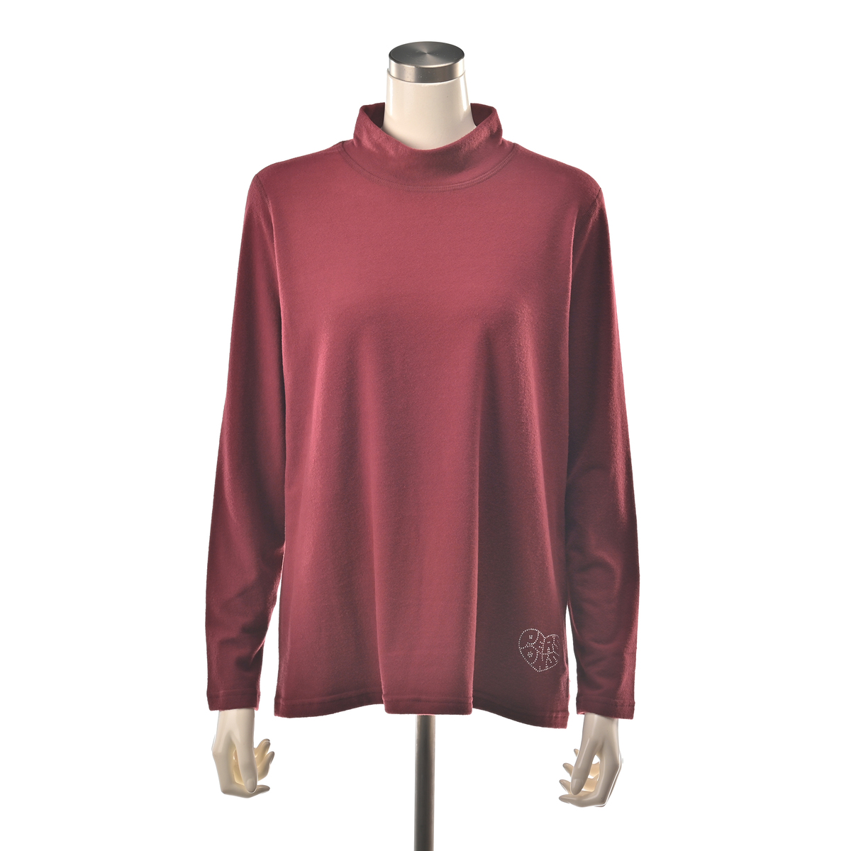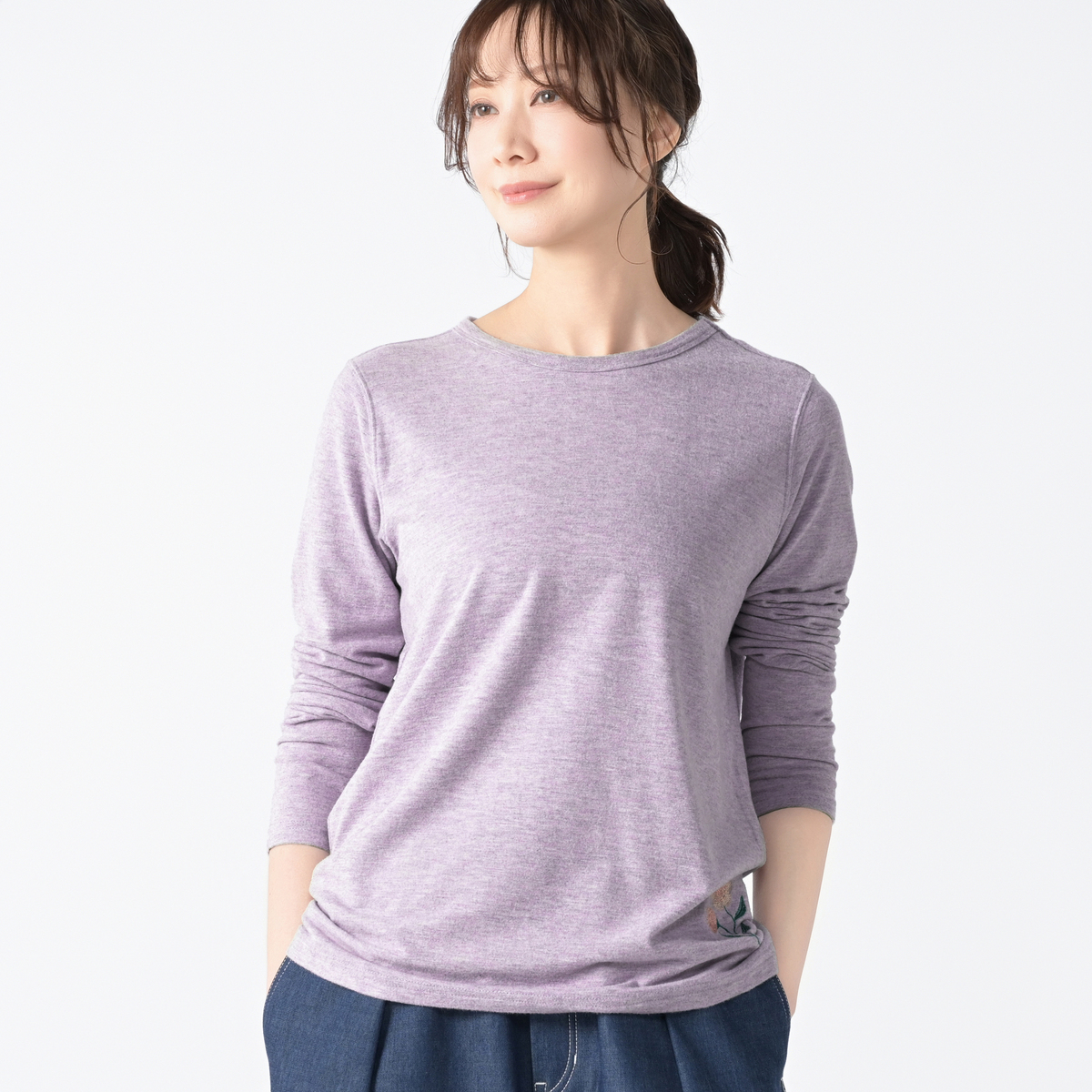 もちっとした柔らかな風合いの起毛素材のTシャツ。クルーネック長袖Tシャツとハイネック長袖Tシャツの2枚セットです。ベーシックカラーと優しい色味のニュアンスカラーの組合せで、毎日の装いに便利に着回して頂けます