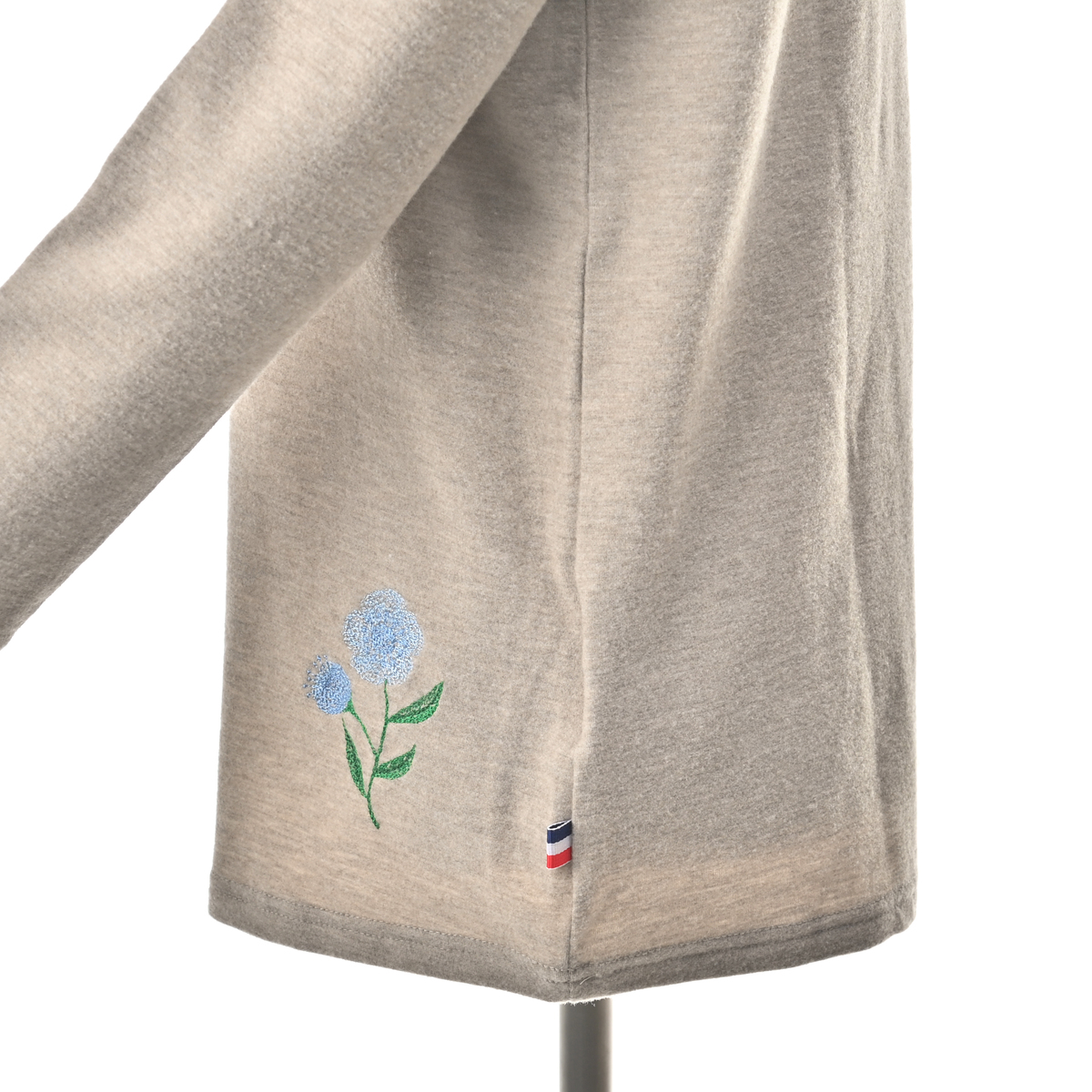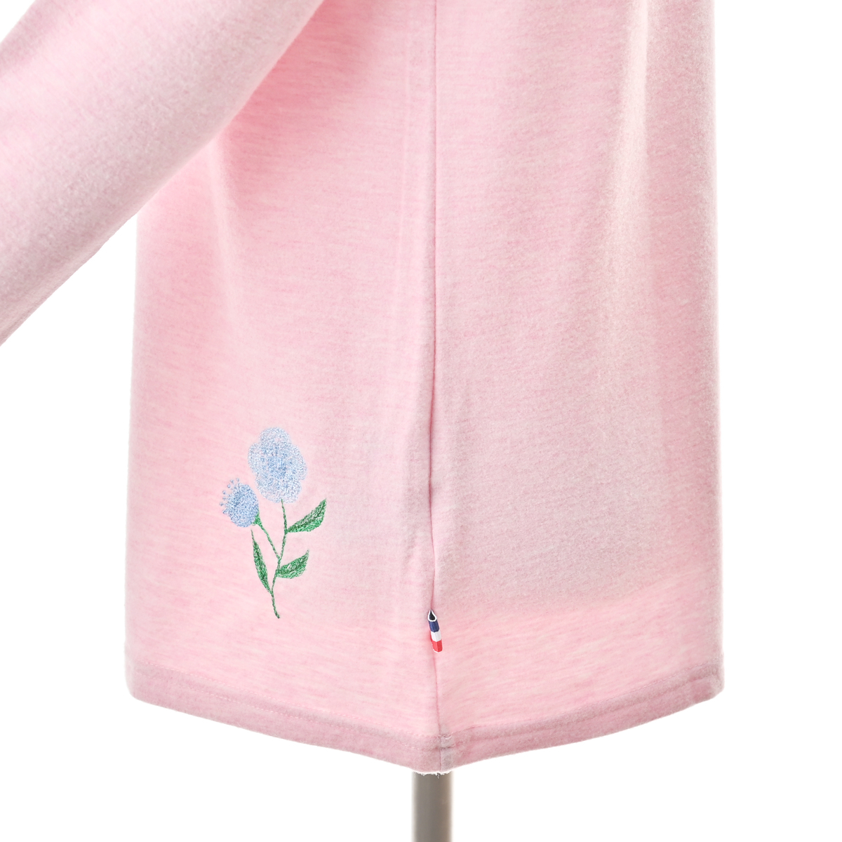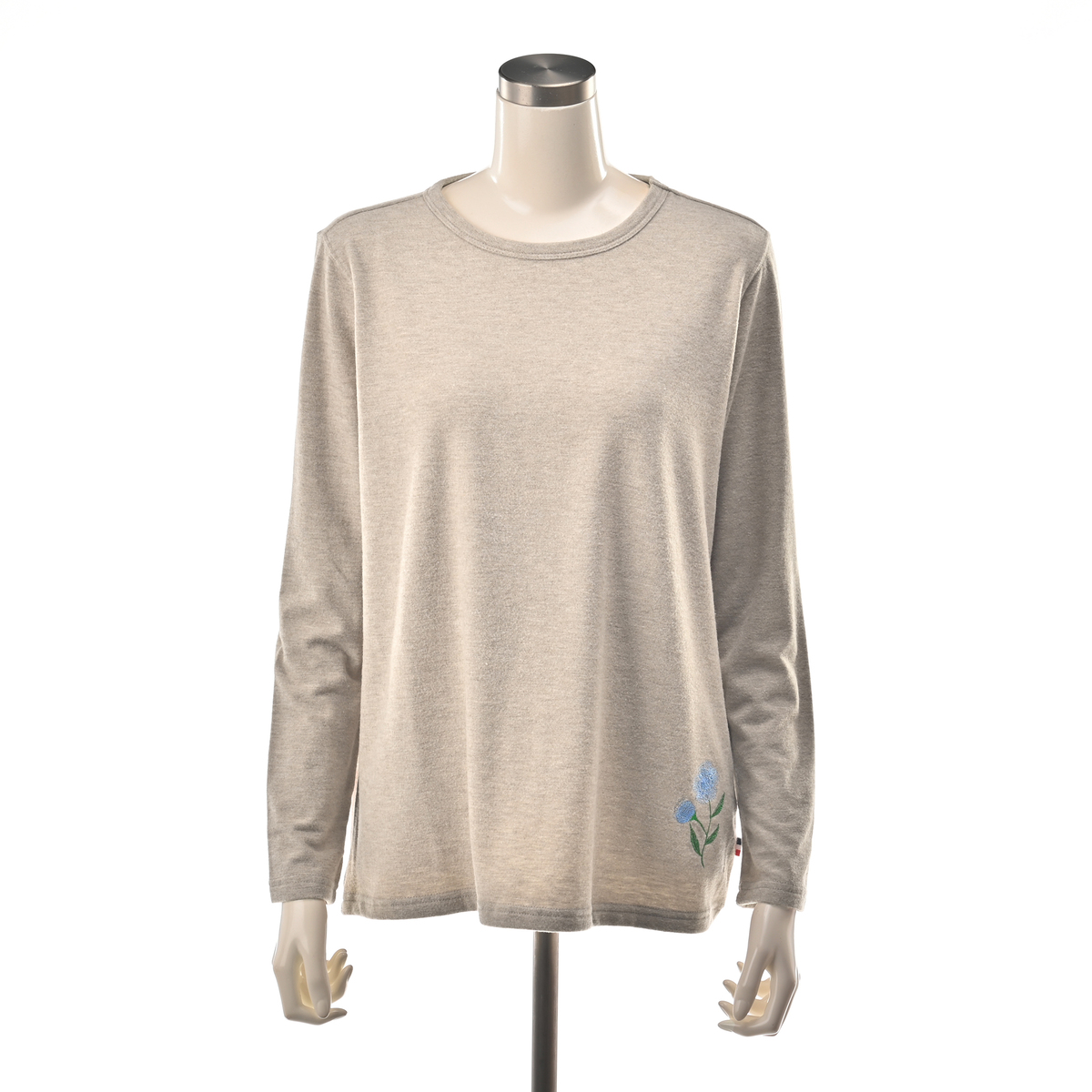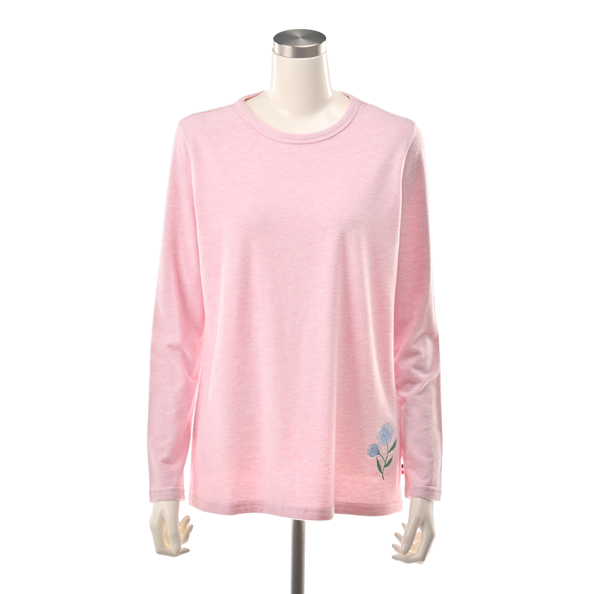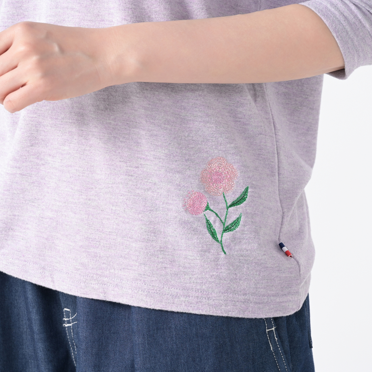 あたたかく着こなせる、やや肉厚の素材を使用。それぞれのTシャツの裾サイドには、フラワーやハートをアレンジしたワンポイントも。コーディネートにアクセントをプラスしてくれます