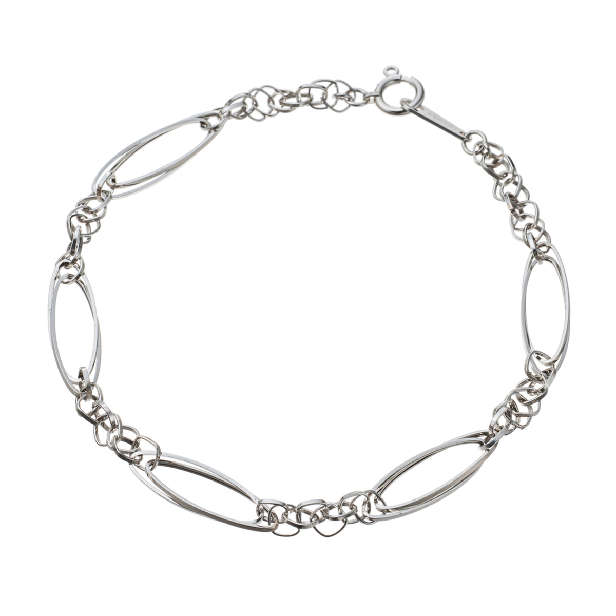 マーキス型とスクエア型のパーツをリズミカルに組合せたブレスレット。マーキスパーツをダブルに重ね、スクエアパーツの組み方を工夫することで、立体的に仕上げました。ほどよいボリューム感がありつつも気品のあるデザインで、純プラチナの艶やかな輝きとともにお楽しみいただけます