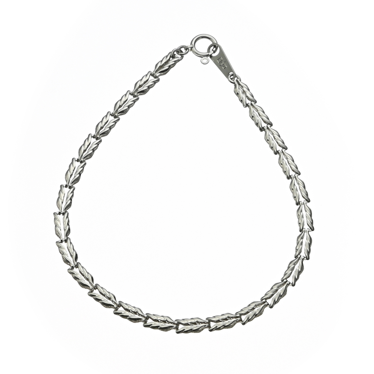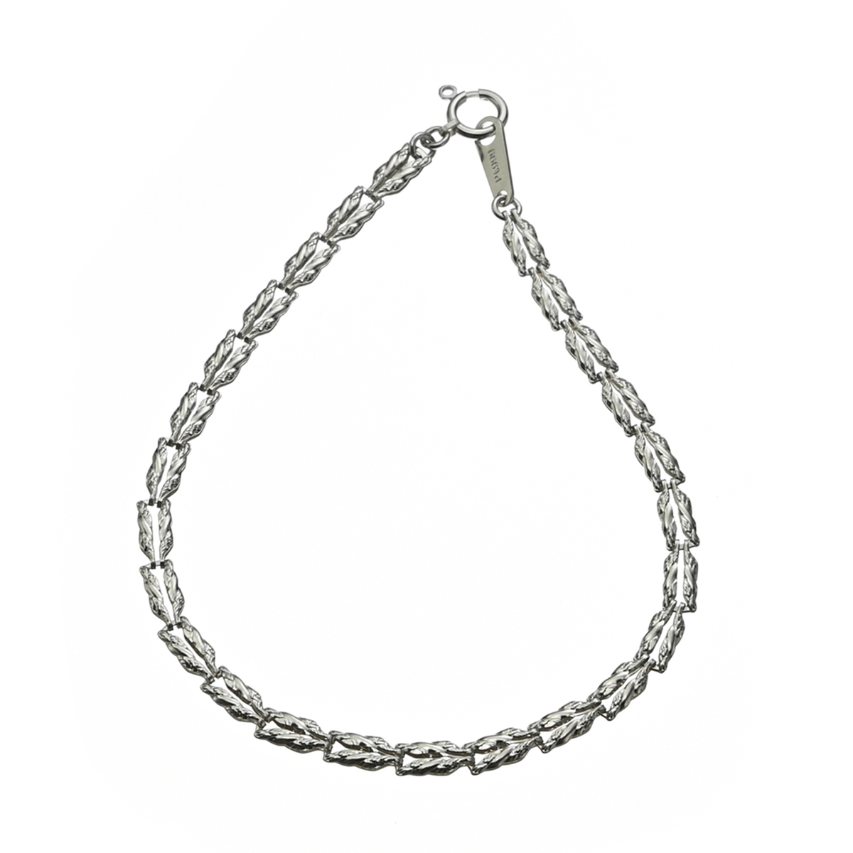 純プラチナの美しい輝きが楽しめるブレスレットです。蘭の花のように丸みのあるパーツが折り重なるように連なり、華やかで優しい雰囲気に。長いパーツを手作業で二つに折り畳み、一つひとつ丁寧に紡ぎ上げました