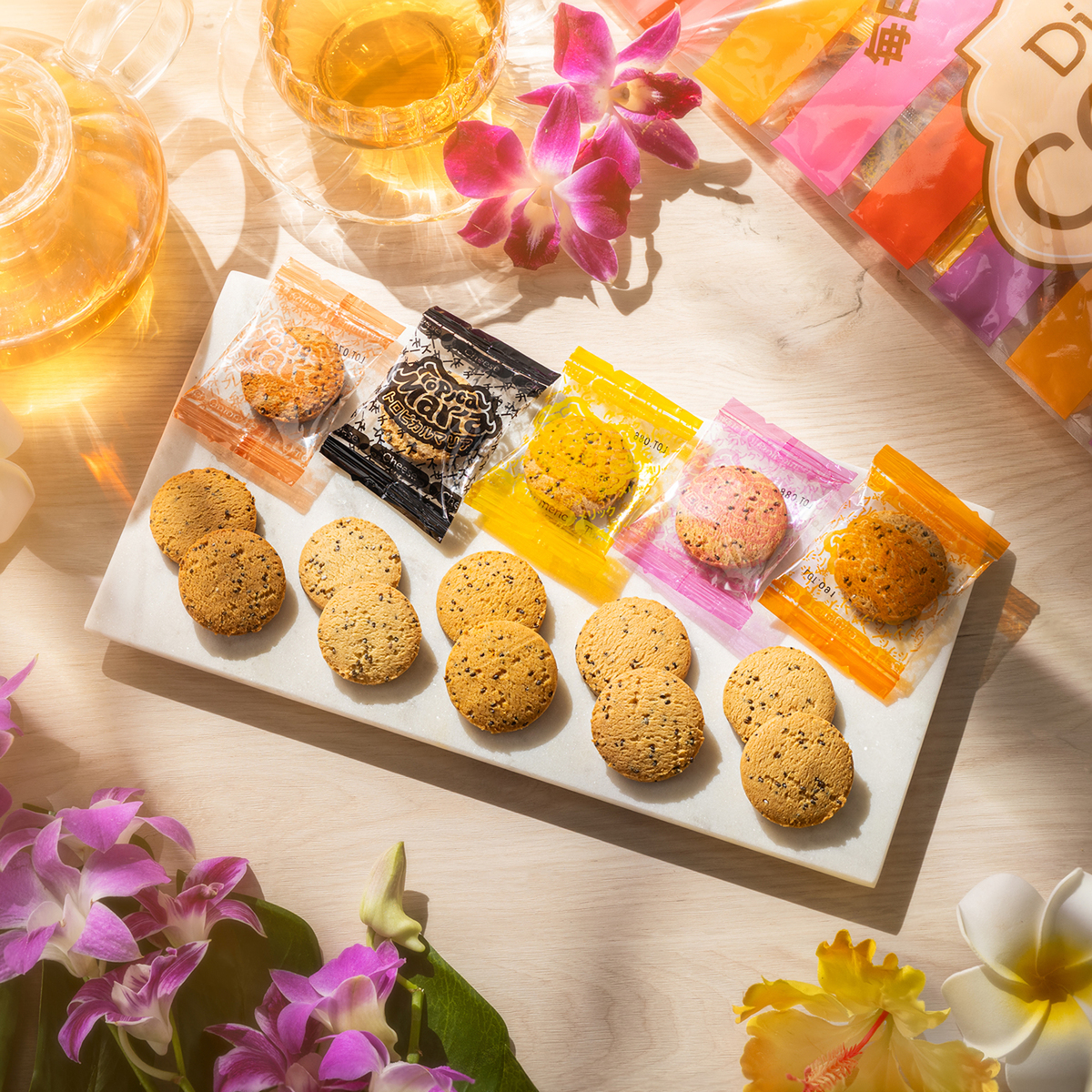 ・フルーツ系(ココナッツパイン、シナモン、瀬戸内レモン、カカオアーモンドペッパー、ブルーベリー) 各18枚/計90枚