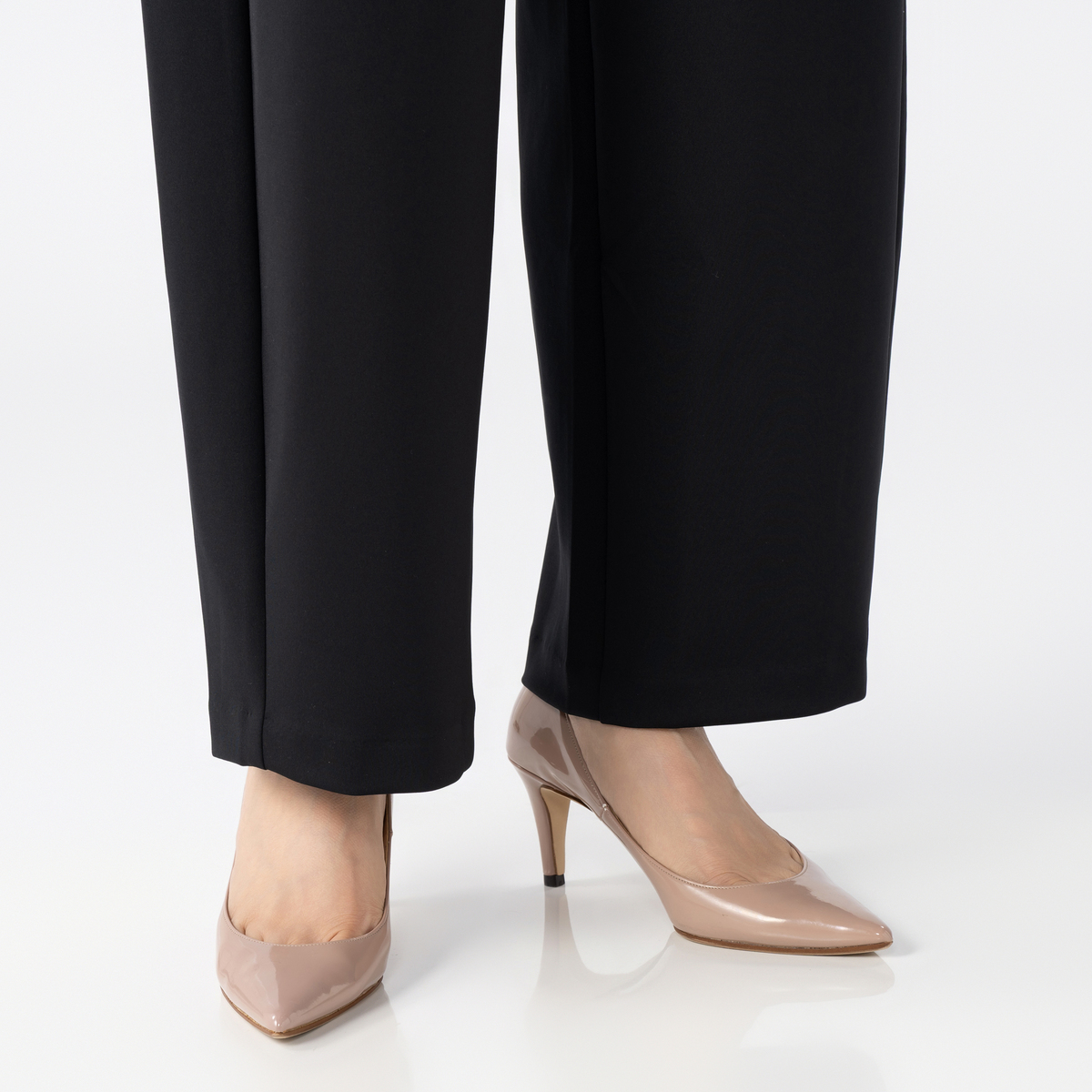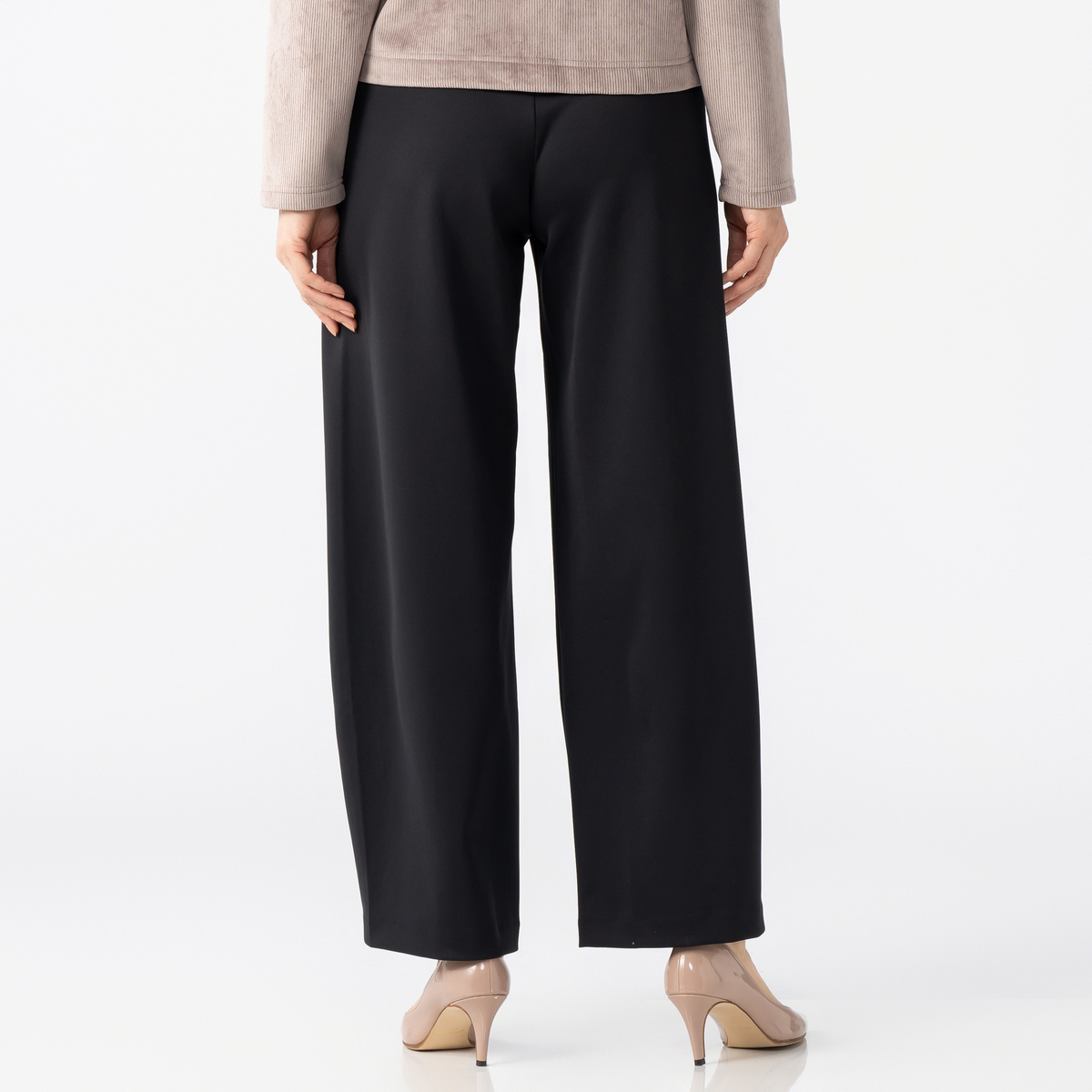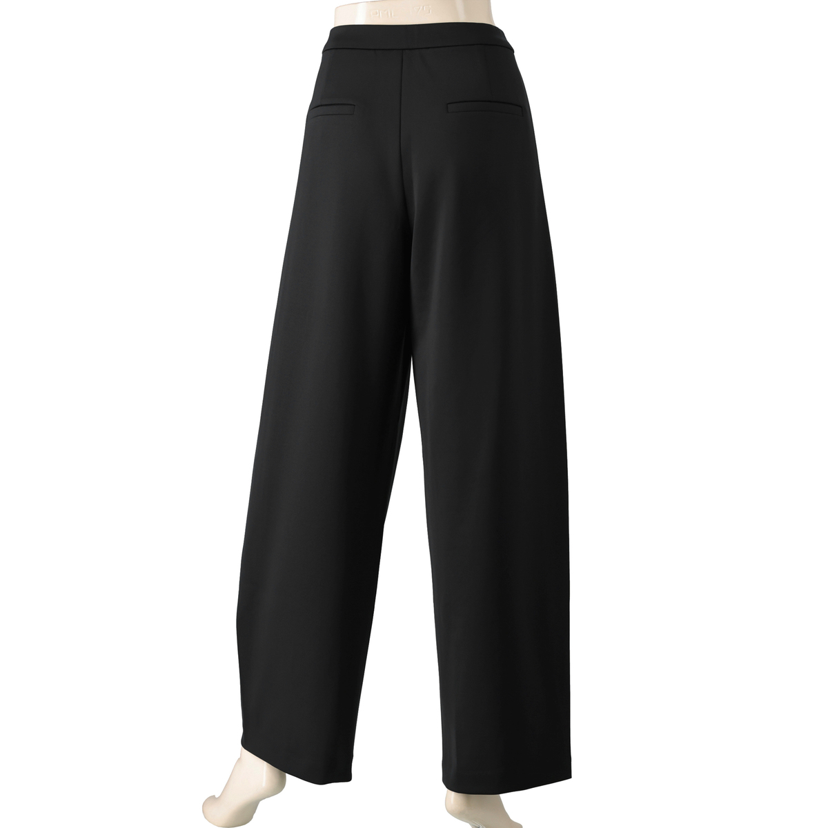 腰周りにタックを入れ、裾に向かって自然なカーブを描くパンツ。丸みのあるフォルムで身体のラインを拾いにくく、程良いボリューム感でこなれた印象を演出できます