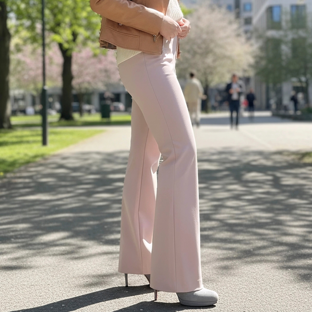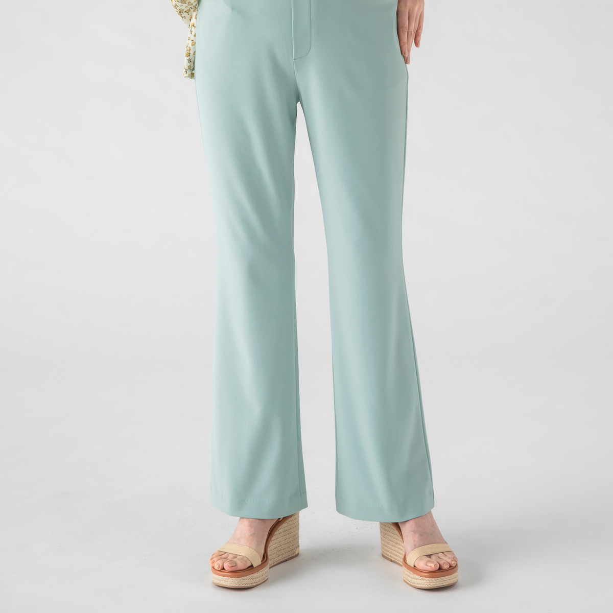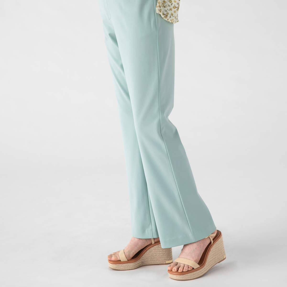 ブーツカットのきれいめパンツ。太すぎず細すぎず、私には理想的な形。伸びるし、涼しいし着用感はとても良いです。夏に向けてグレージュを頼みましたが、ちょっとだけ透けるのが残念。