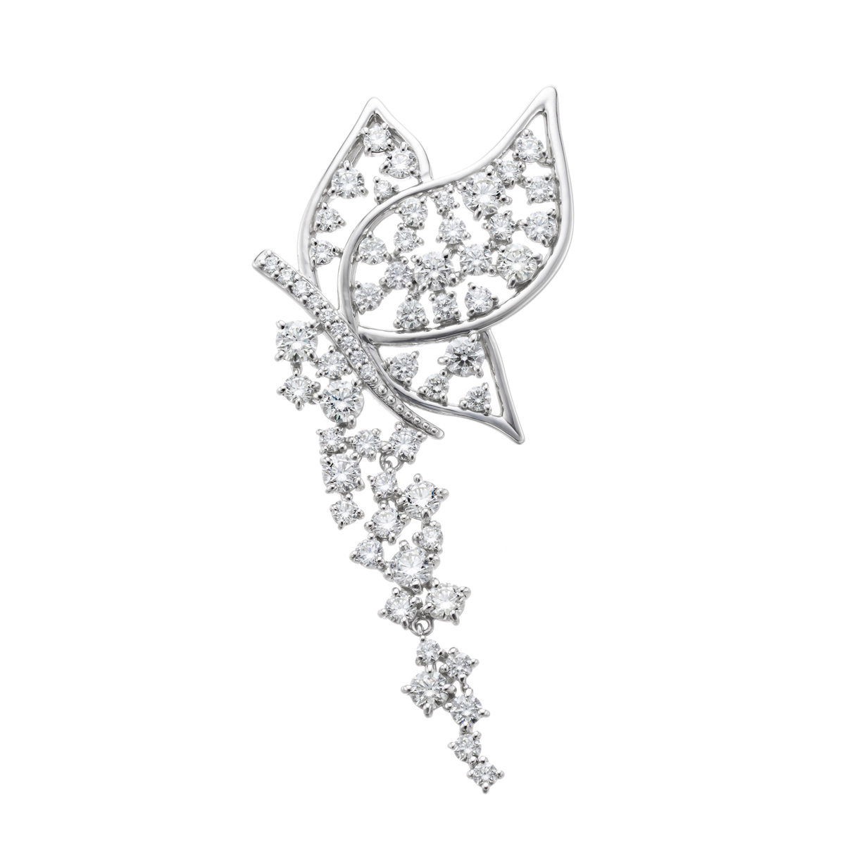素肌の上はもちろん、長めのチェーンで服の上から着けても映える存在感。蝶々から朝露が零れ落ちる様を表現したデザインで、胸元に煌めきが広がります