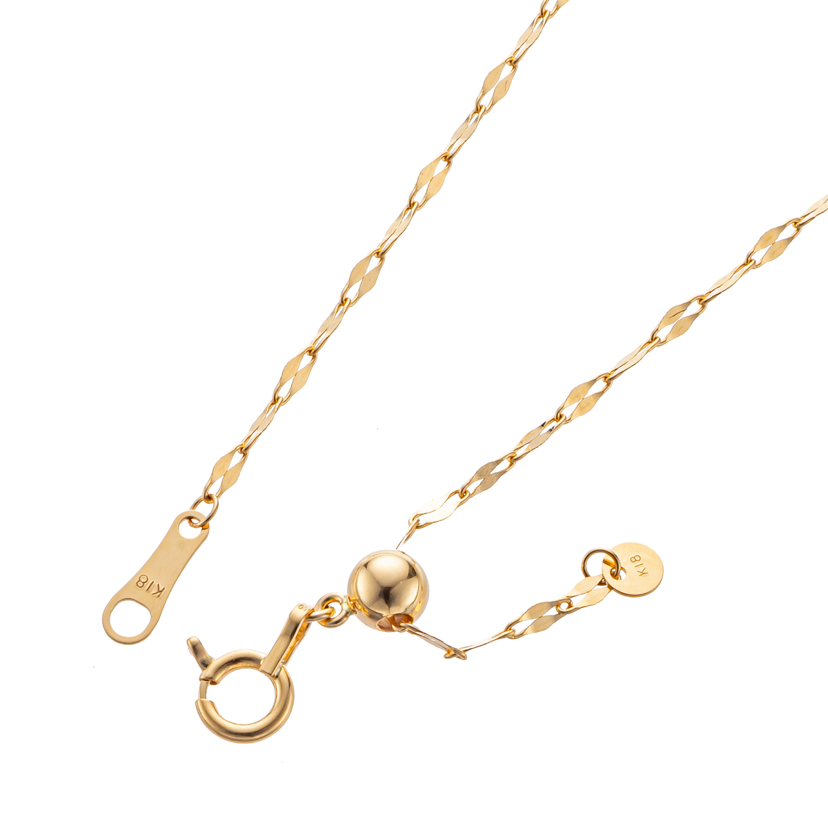 [地金] 18Kイエローゴールド 総重量(約) 45cm:1.2g 60cm:1.6g 長さ(約) 45.0cm 60.0cm 幅(約) 1.5mm チェーンの形状 ペタル 留具の形状 引き輪 アジャスターの有無 有(スライド式) 留め具の受け側 最大幅×高さ 2.8×2.0mm ■受注発注商品のためデザイン・価値に影響のない範囲で仕様が変わる場合がございます ■素材の大きさ・形・色合い、製品のサイズは1点1点多少異なります 【日本製】