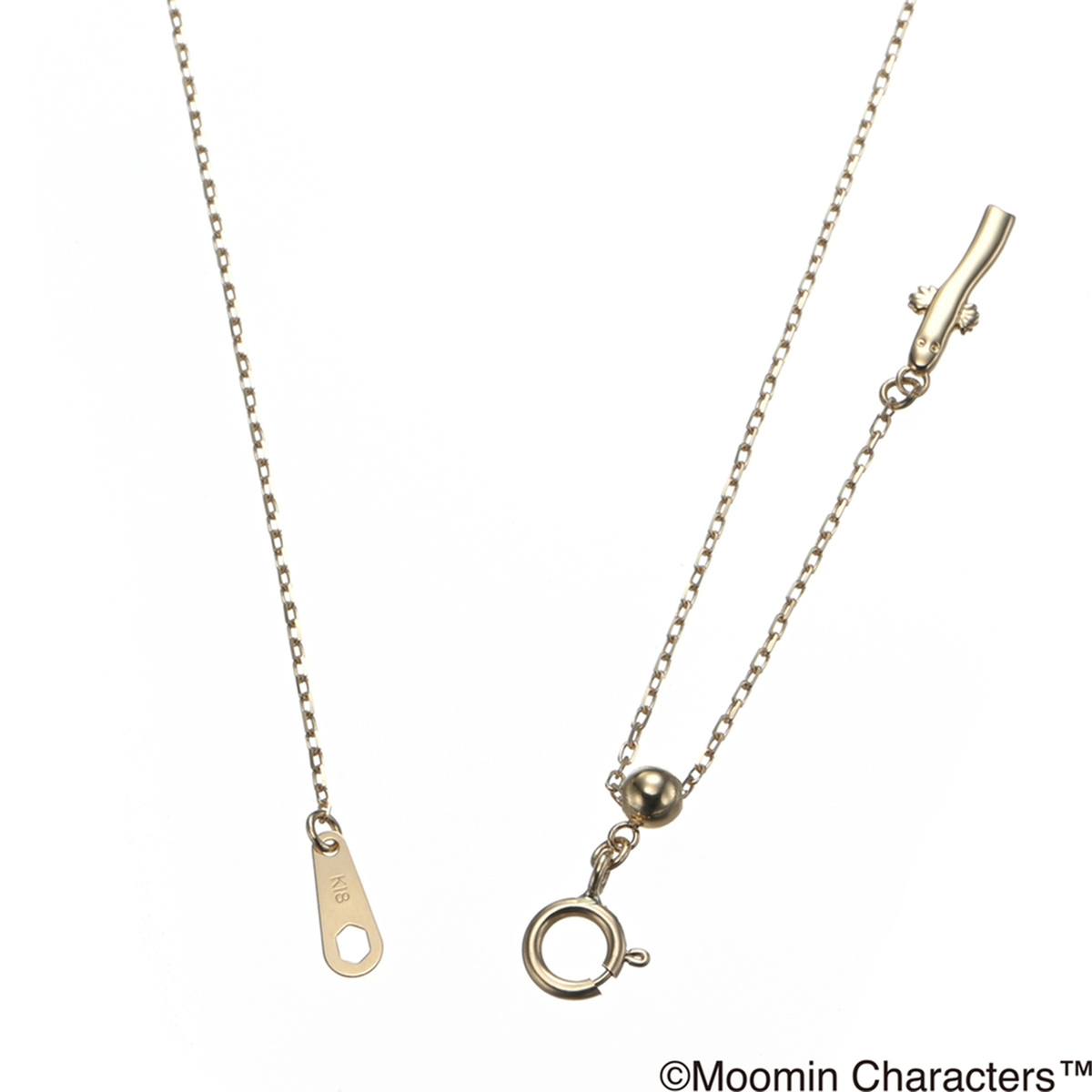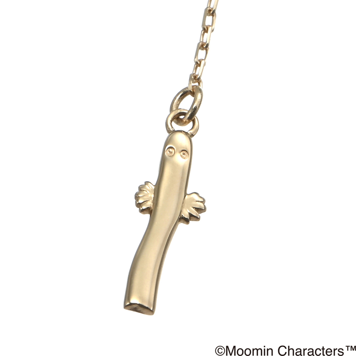 ムーミン谷でもっとも謎が多い生き物、ニョロニョロをエンドパーツにした18金チェーンネックレス。細いキノコや細長い靴下のような姿が特徴で、いつも集団でゆらゆらと揺れながら移動。どこか目が離せない人気のキャラクターです