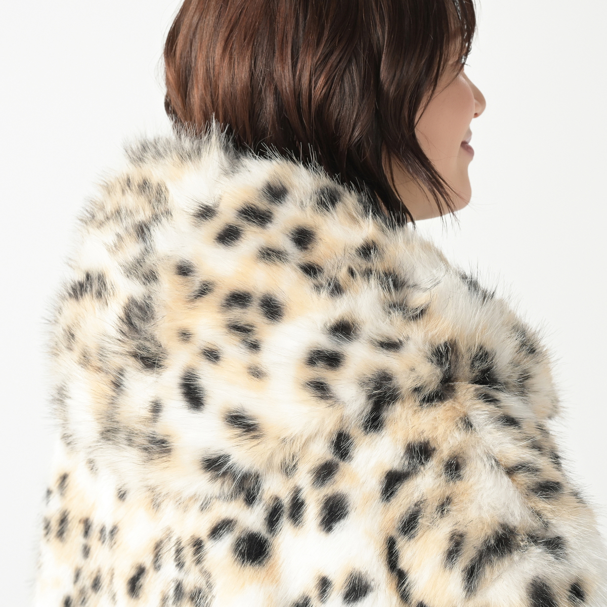 ボリュームのあるフードとゆとりのあるシルエットが顔まわりを華やかに演出。両脇には便利なポケットを備えています。ふわふわのフェイクファーが、羽織るだけでラグジュアリーなコーデを叶えます