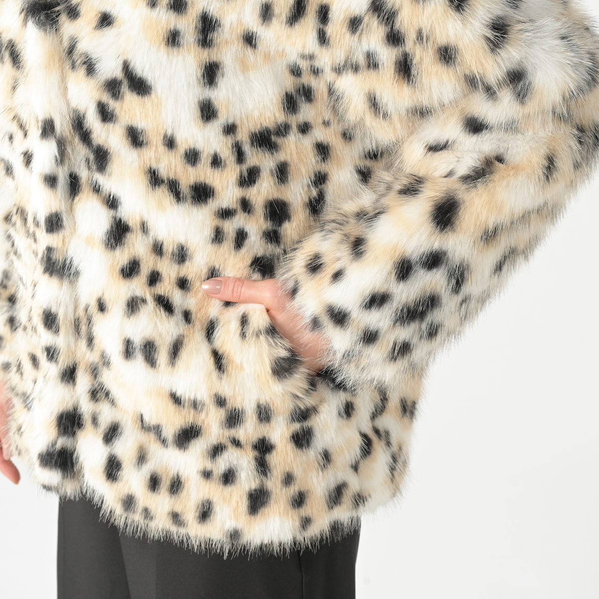 トレンド感とゴージャスさをまとったフェイクファージャケット。ふわっとした毛足の長い素材でボリュームがあり、裏地付きでさらりとした肌触りです