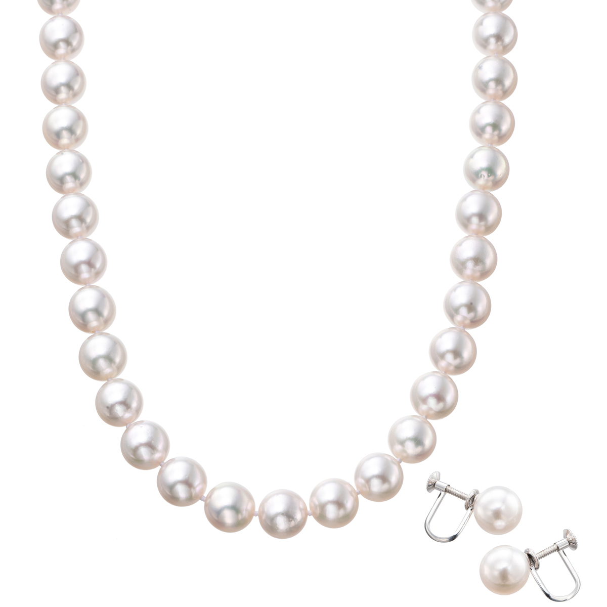 アコヤ真珠 9.5mm ネックレス&イヤリング/ピアスセット