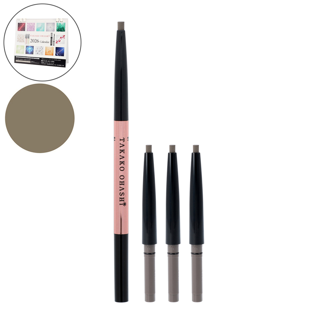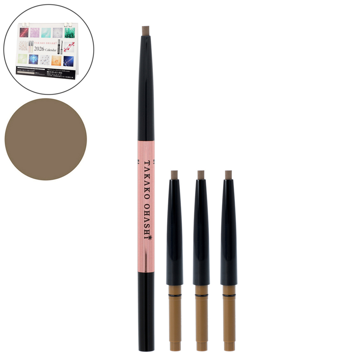 [商品内容] ・大橋タカコパウダースリムアイブロウ ロングラスティングEX(スクリューブラシ付きホルダー&カートリッジ) ・大橋タカコパウダースリムアイブロウ ロングラスティングEX(カートリッジ) ×3 ・大橋タカコオリジナル卓上カレンダー2026※プレゼント [使用方法] セット方法:専用ホルダーにカチッと音がするまで差し込んでお使いください ・ペンシルの先端を持ちホルダーを右方向にまわし1.5mm〜2mm程度出しておつかいください ・使用後は芯を元にお戻しください ・ホルダーを右方向にまわし続けても芯が出てこなくなりましたら新しいカートリッジにお取替えください [注意事項] ※お肌に異常が生じてないかよく注意して使用してください ※傷やはれもの、湿疹等異常のある部分にはお使いにならないでください ※使用中、使用後または使用をしたお肌に直射日光があたって赤み、はれ、かゆみ、刺激、色抜け(白斑等)や黒ずみ等の異常があらわれた時は使用を中止し、皮膚科専門医等への相談をおすすめします。そのまま使用を続けますと症状を悪化させることがあります ※目に入った時は直ちに水かぬるま湯で洗い流してください。異物が残る場合は眼科医への相談をおすすめします ※極端に高温または低温の場所、直射日光のあたる場所には保管しないでください ※乳幼児の手の届かないところに保管してください ※落下等の強い衝撃を与えないでください ※芯を3mm以上出してお使いにならないでください。出しすぎると芯が折れる場合がありますのでご注意ください 【日本製】 [成分] ナチュラルブラウン:マイカ、ステアリン酸、合成モクロウ、ダイマージリノール酸(フィトステリル/イソステアリル/セチル/ ステアリル/ ベヘニル)、水添ヒマシ油、トリエチルヘキサノイン、結晶セルロース、イソステアリン酸デキストリン、スクワラン、アルガニアスピノサ核油、マカデミアナッツ油、ホホバ油、オリーブ油、ローズヒップ油、カニナバラ果実/(センチフォリアバラ/ ダマスクバラ)花エキス、トリイソステアリン酸イソプロピルチタン、ラウロイルアスパラギン酸Na、塩化亜鉛、水酸化Al、酸化鉄、酸化チタン ライトブラウン:マイカ、ステアリン酸、合成モクロウ、ダイマージリノール酸(フィトステリル/イソステアリル/セチル/ ステアリル/ ベヘニル)、水添ヒマシ油、トリエチルヘキサノイン、イソステアリン酸デキストリン、結晶セルロース、スクワラン、アルガニアスピノサ核油、マカデミアナッツ油、ホホバ油、オリーブ油、ローズヒップ油、カニナバラ果実/(センチフォリアバラ/ ダマスクバラ)花エキス、トリイソステアリン酸イソプロピルチタン、ラウロイルアスパラギン酸Na、塩化亜鉛、水酸化Al、酸化鉄、酸化チタン