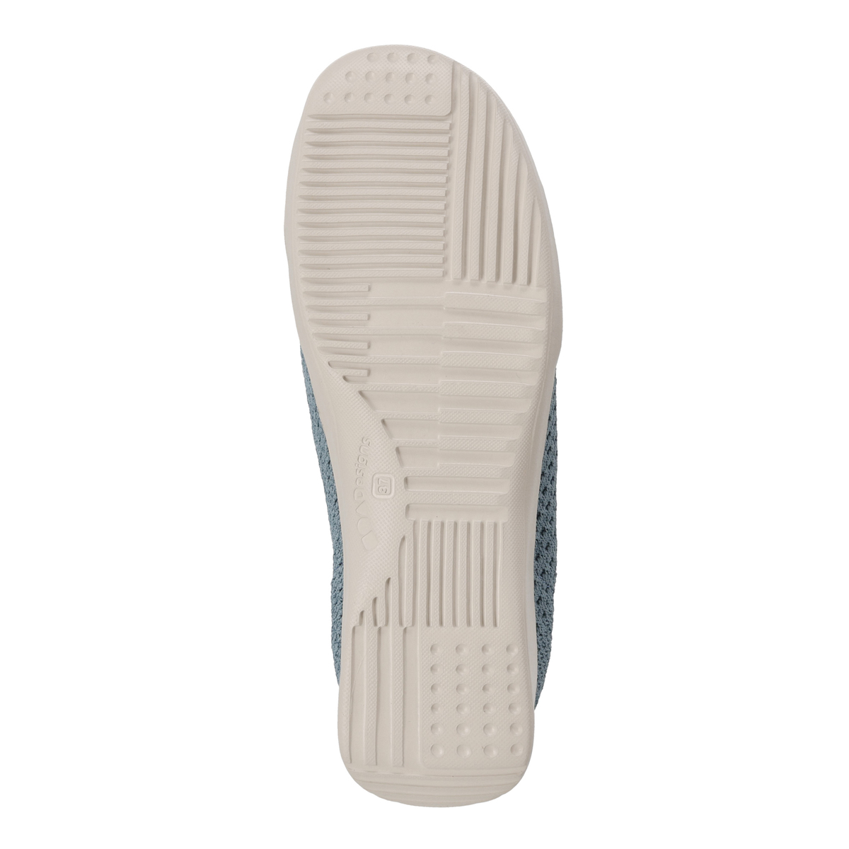アウトソールは軽やかなEVA素材。屈曲性に優れ接地面積が広いので安定しやすく、アウトソール裏は凹凸加工で滑りにくい構造になっています