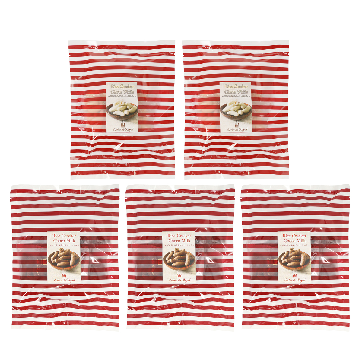 カリッとした食感のピリ辛あられにミルクチョコレートをコーティングしたミルク味と、ホワイトチョコレートをコーティングしたホワイト味をセットでお届け。あられの塩味とチョコレートのマイルドな甘さを程よくマッチさせ、食べだしたら止まらなくなる美味しさに仕上げました