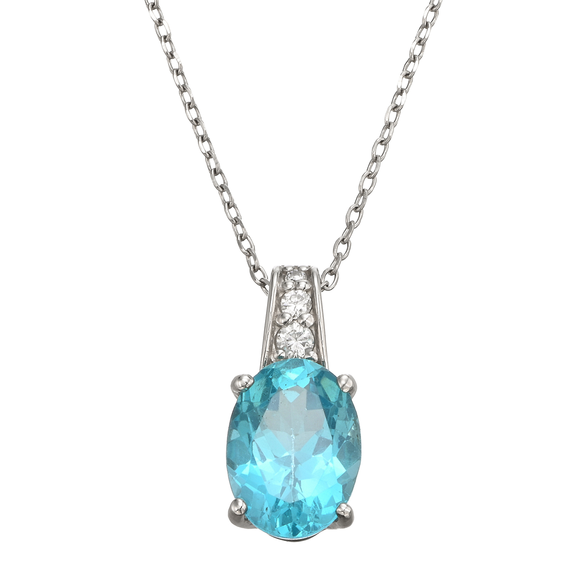 澄み渡るブルーが目を惹く、アパタイトをあしらったペンダント。南国の海を思わせる美しい色合いが胸元を彩ります