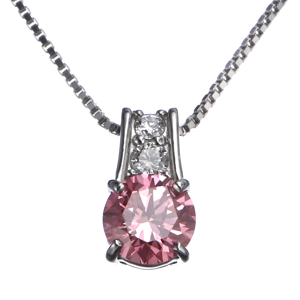 素材:[合成ピンクダイヤモンド] ラウンドブリリアントカット 爪留め 1石 0.70ctUP (カラー:FANCY VIVID PINK/FANCY VIVID PURPLISH PINK/FANCY INTENSE PINK/FANCY INTENSE PURPLISH PINKのいずれか/クラリティ:SI UP) [ダイヤモンド] ラウンドブリリアントカット 爪留め 2石 合計0.07ctUP (カラー:D/クラリティ:VS UP/カット:GOOD UP) 総重量(約) 3.3g 長さ(約) 45.0cm バチカンの内径(約) 4.3×1.2mm 幅(約) 0.7mm チェーンの形状 ベネチアン 留具の形状 引き輪 アジャスターの有無 有(スルーピン式) チェーンの取り外し 可 ヘッドの縦×横(約) 11.0×5.4mm [地金] プラチナ950 [付属品] 鑑定書 ■素材の大きさ・形・色合い、製品のサイズは1点1点多少異なります 【日本製】