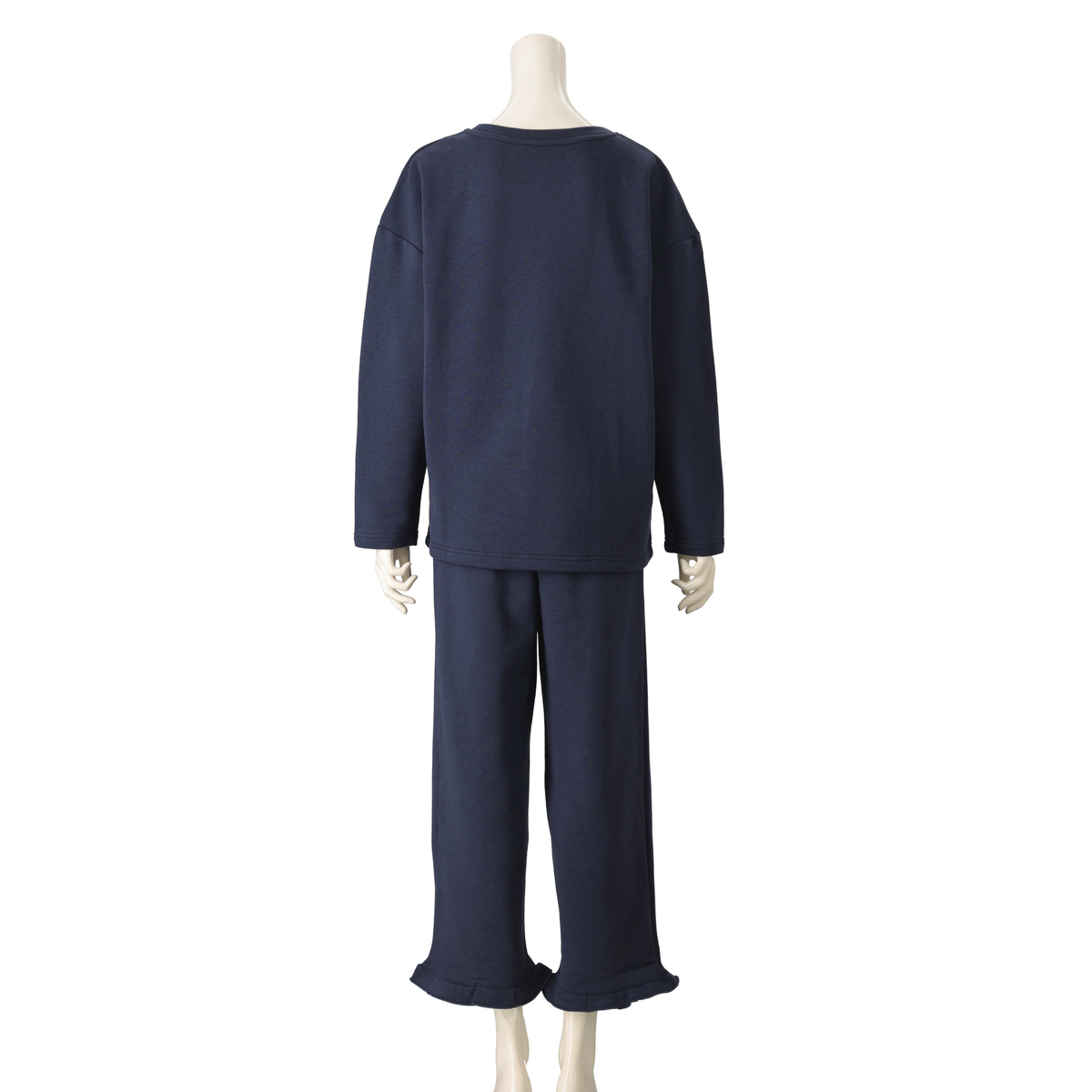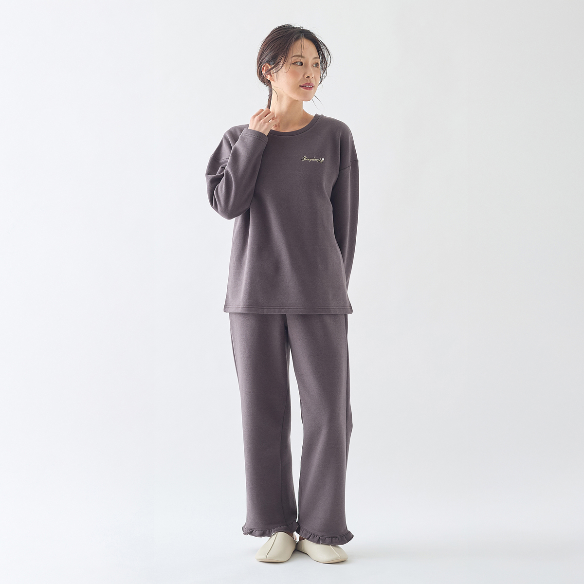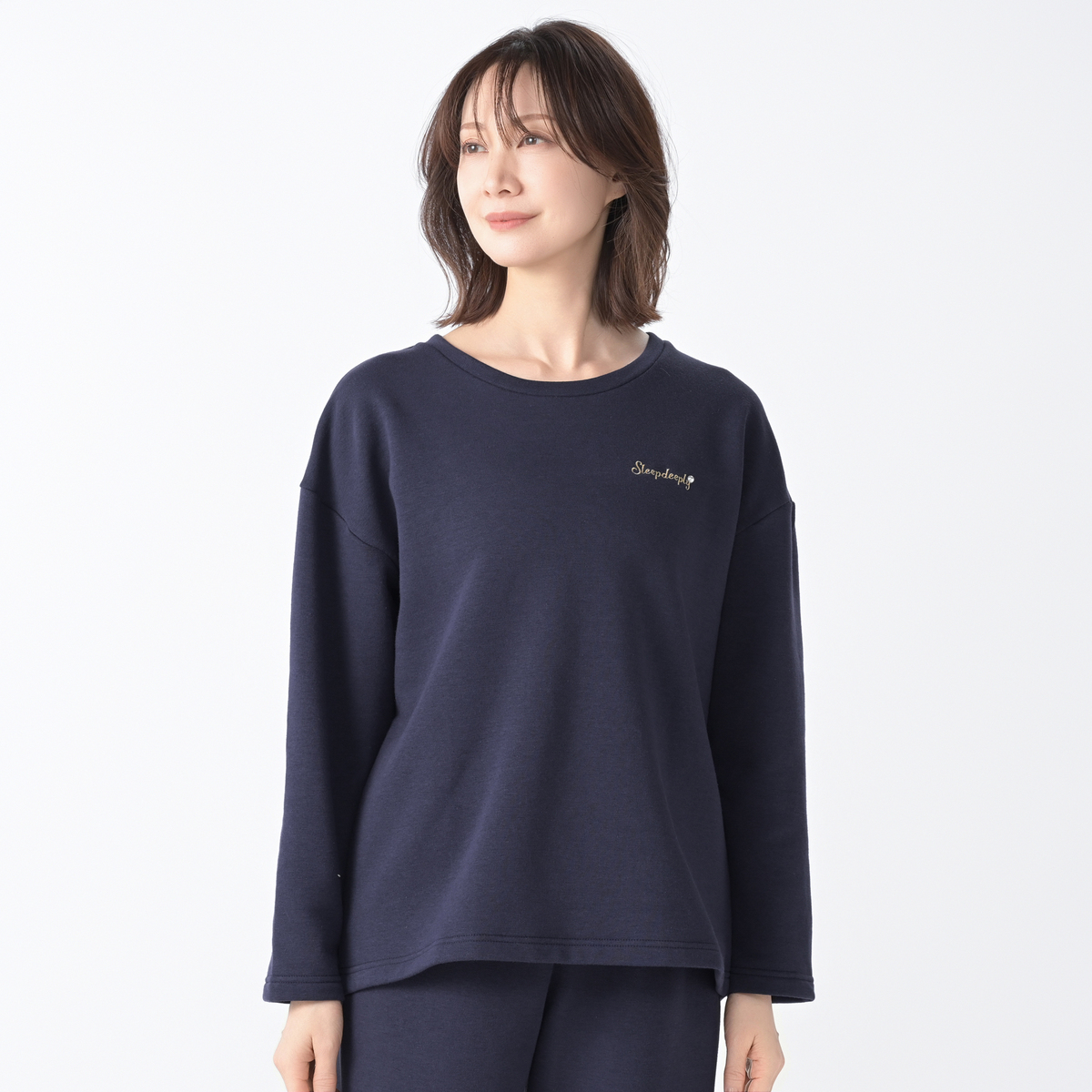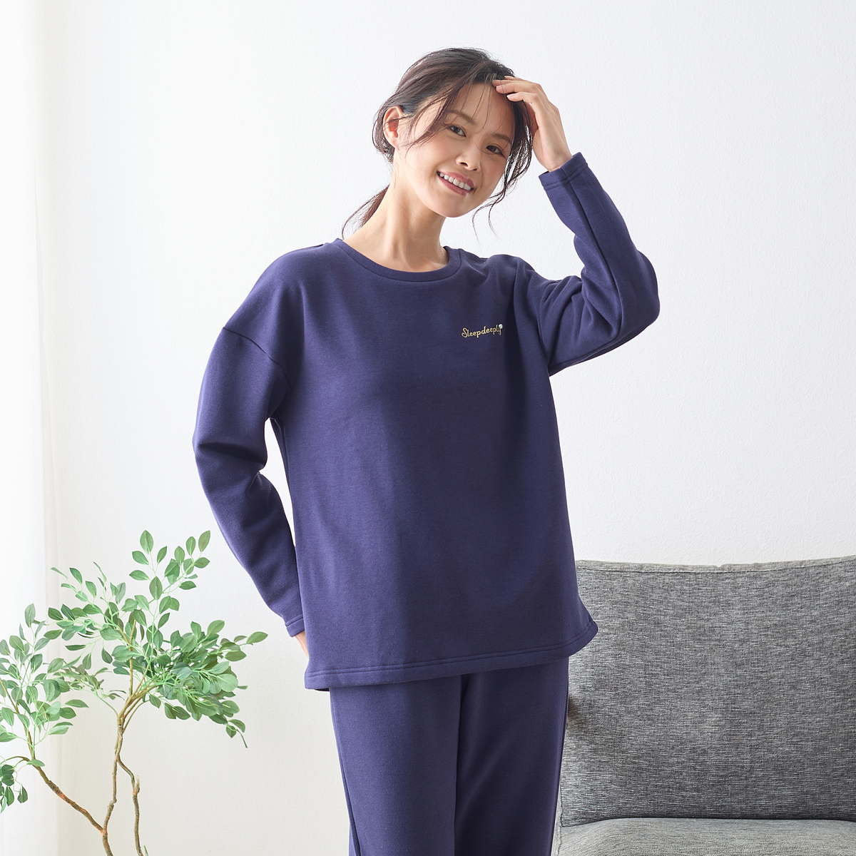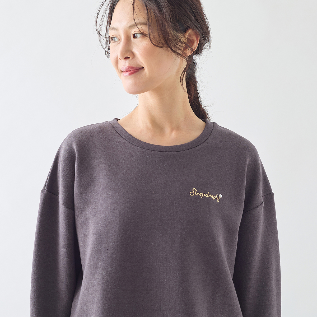 裏起毛で着た瞬間から、ヒヤッと感が少なく、心地よい暖かさで包み込まれるルームウェア。内側にはふわふわに起毛させた素材を使用。この起毛部分がたっぷりと空気を含み、まるで暖かい空気の層をまとっているかのような感覚を生み出します