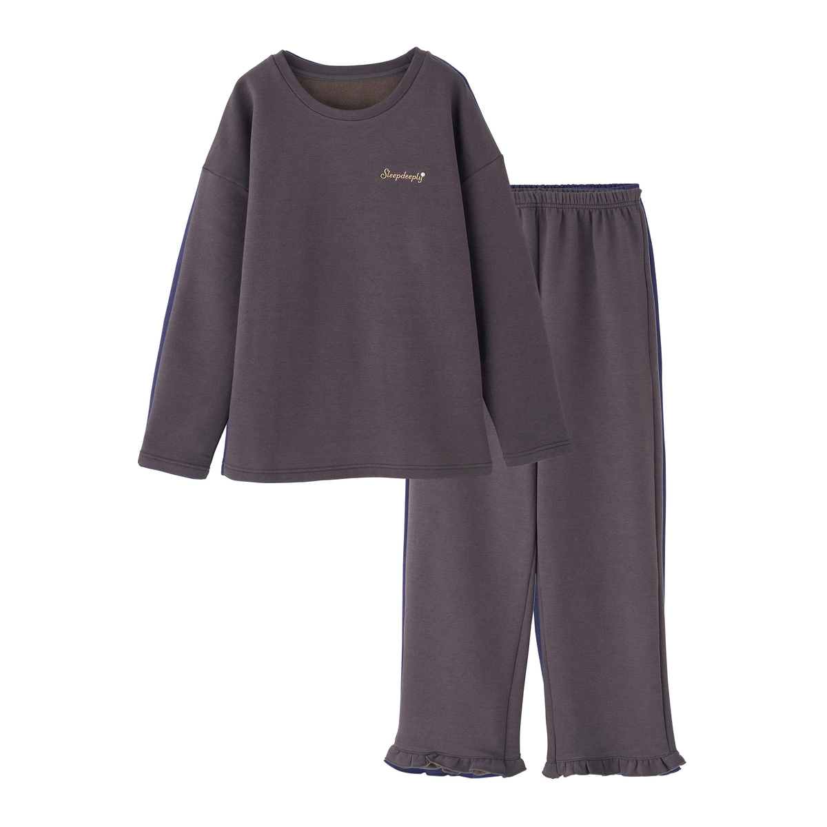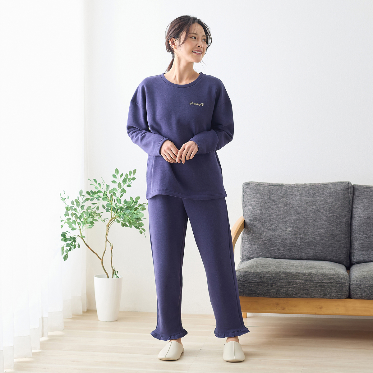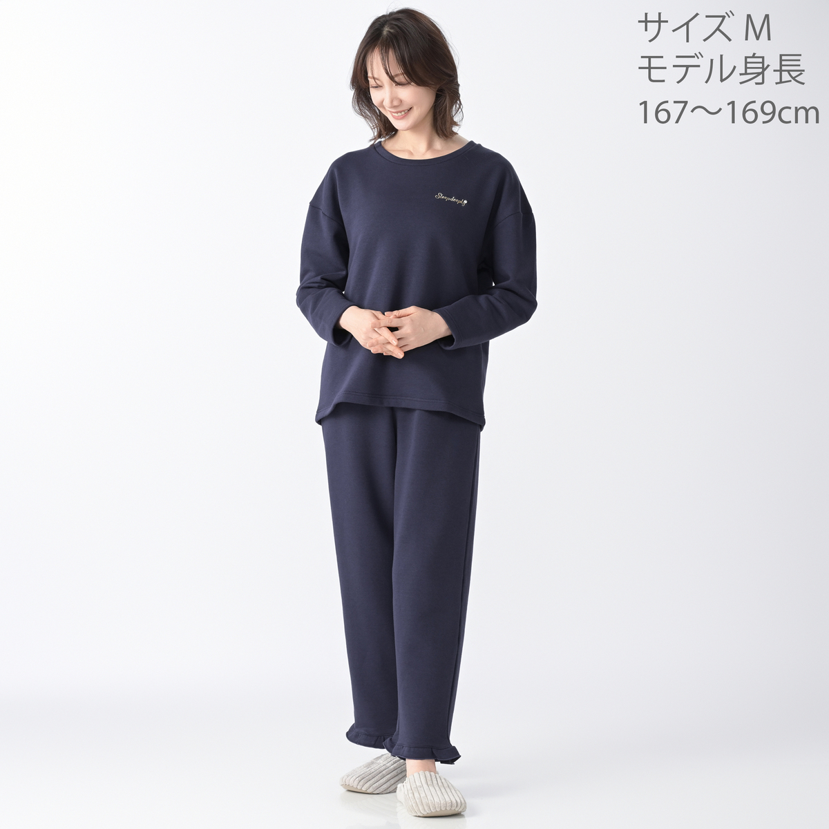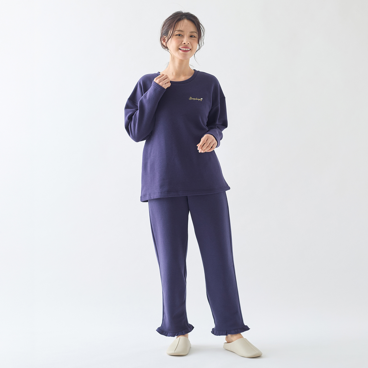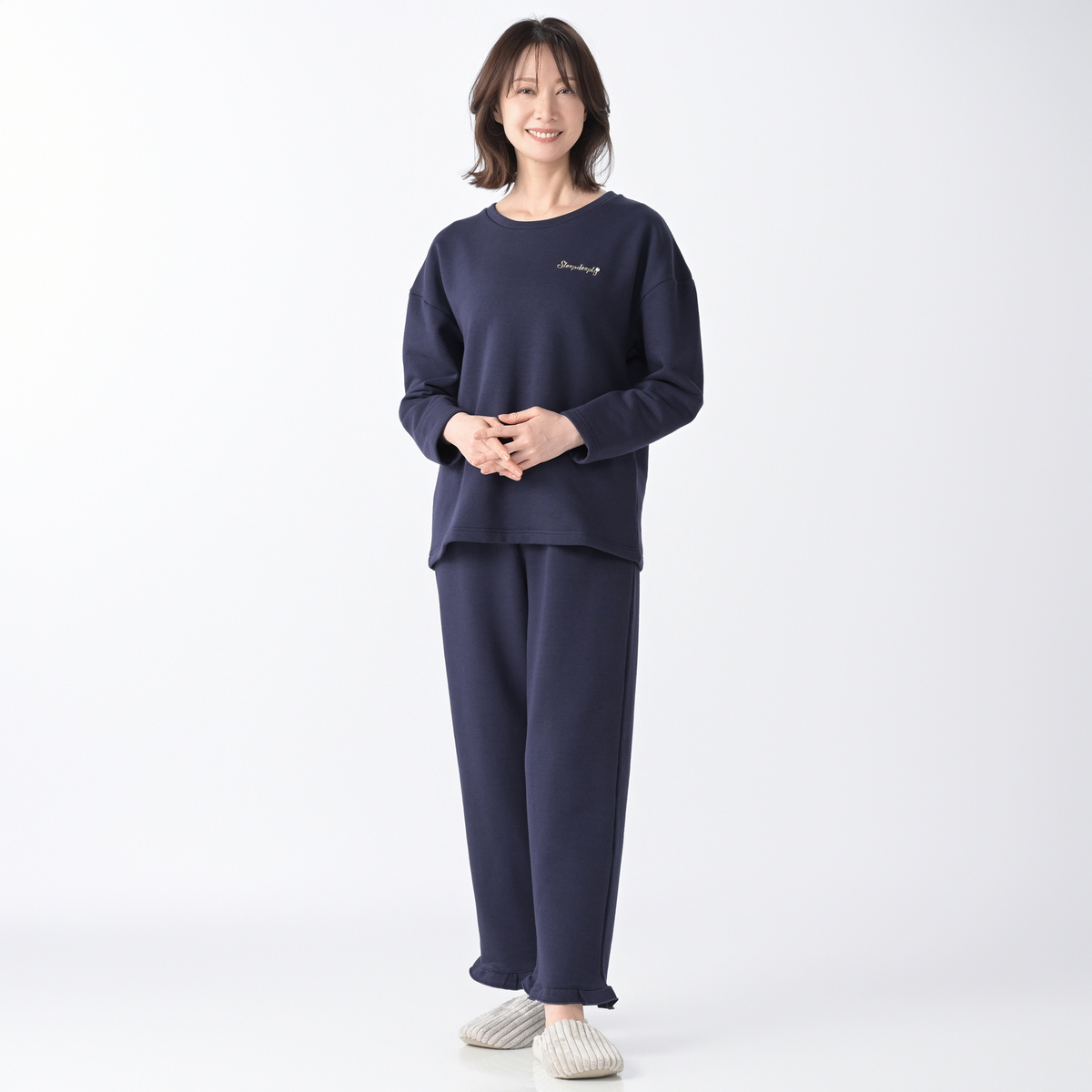 裏起毛で着た瞬間から、ヒヤッと感が少なく、心地よい暖かさで包み込まれるルームウェア。内側にはふわふわに起毛させた素材を使用。この起毛部分がたっぷりと空気を含み、まるで暖かい空気の層をまとっているかのような感覚を生み出します