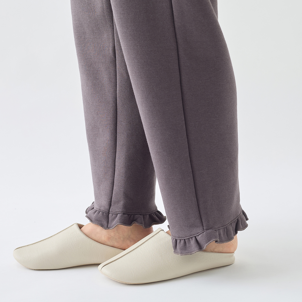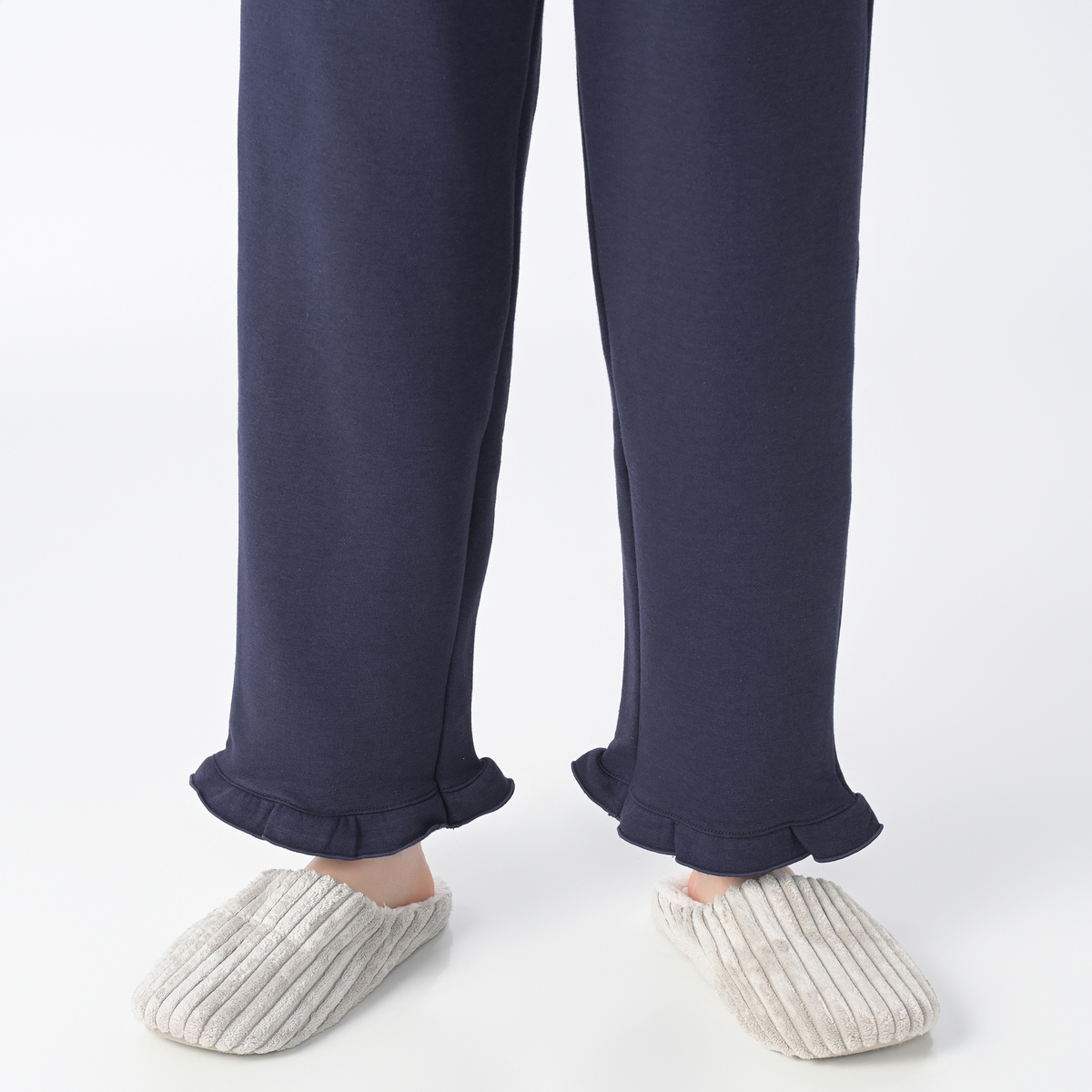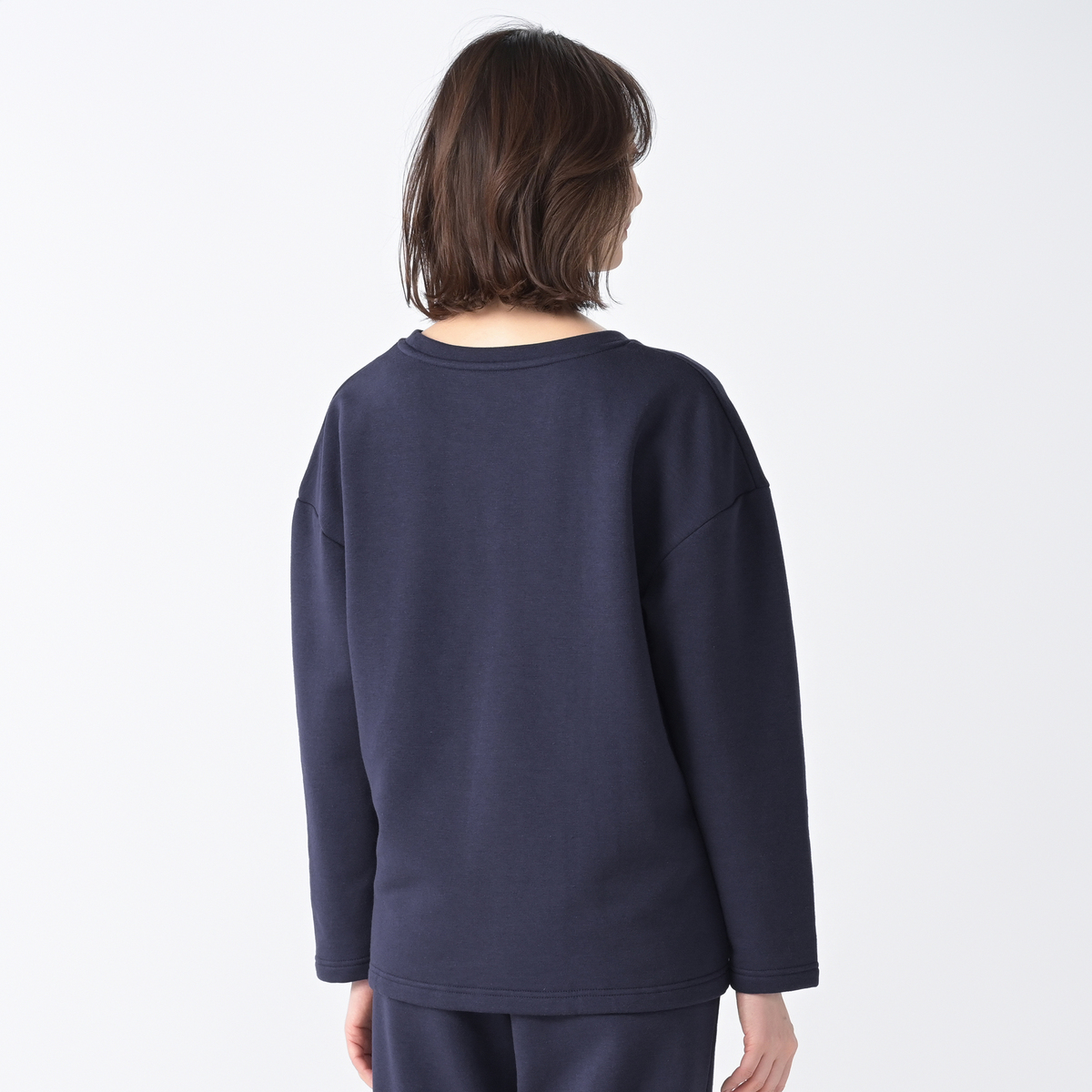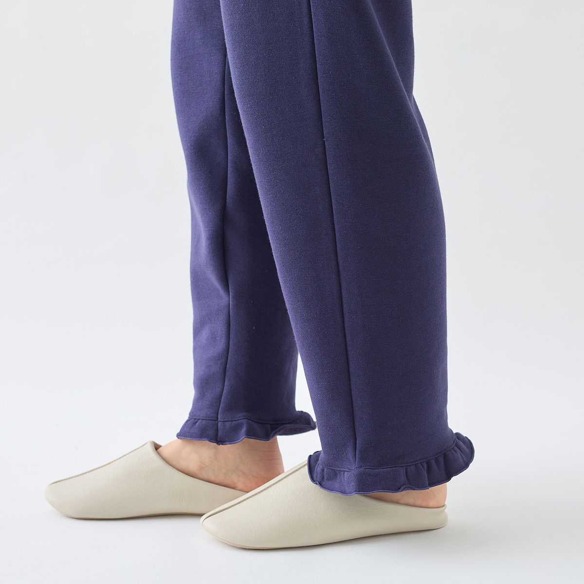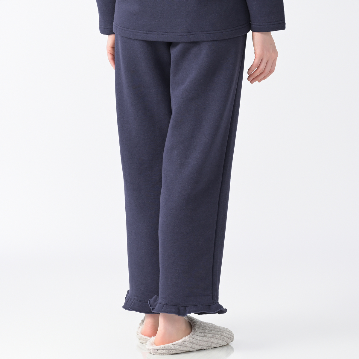 裏起毛で着た瞬間から、ヒヤッと感が少なく、心地よい暖かさで包み込まれるルームウェア。内側にはふわふわに起毛させた素材を使用。この起毛部分がたっぷりと空気を含み、まるで暖かい空気の層をまとっているかのような感覚を生み出します