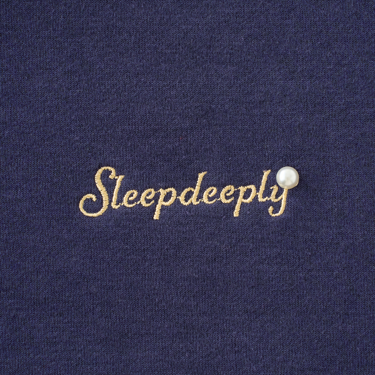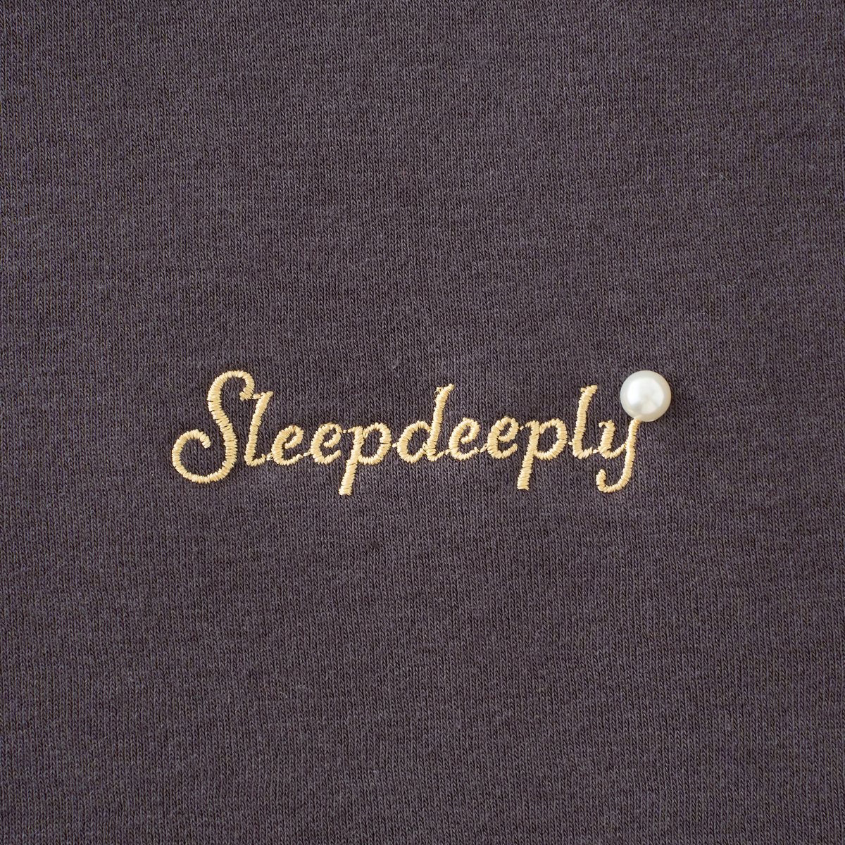 トップスの胸元には、上品な輝きを放つパール調パーツをワンポイントで配置。シンプルなデザインに華やかさと品格を添えました