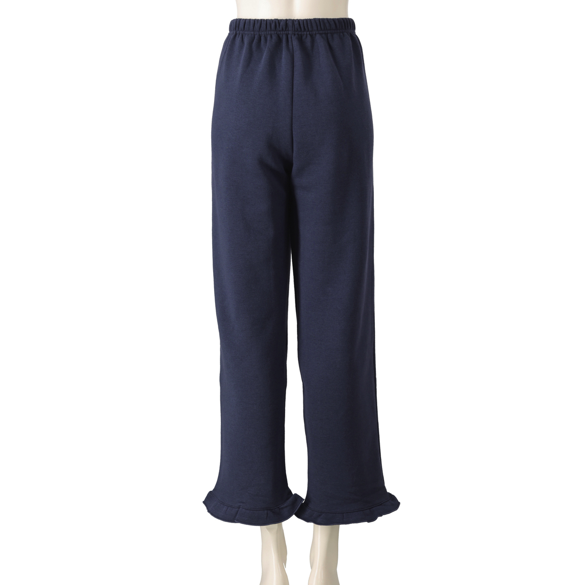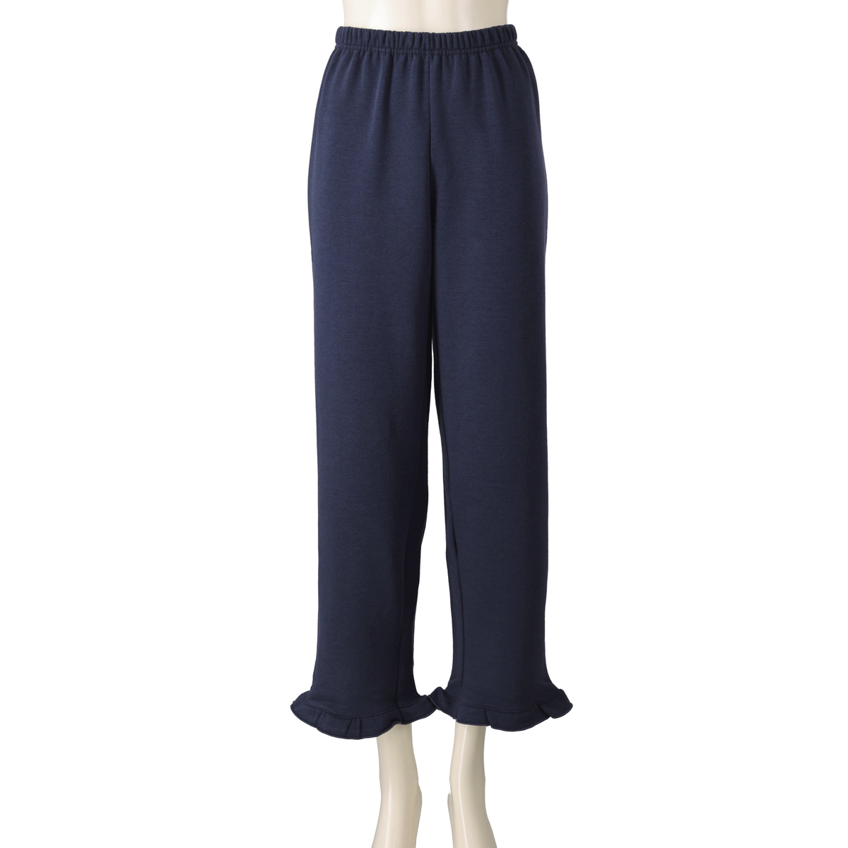 裾にはふんわりとしたフリルをプラス。柔らかな印象を引き立てます。フリルが視線を下へ集めるため、すっきり見せも視覚的に期待できます