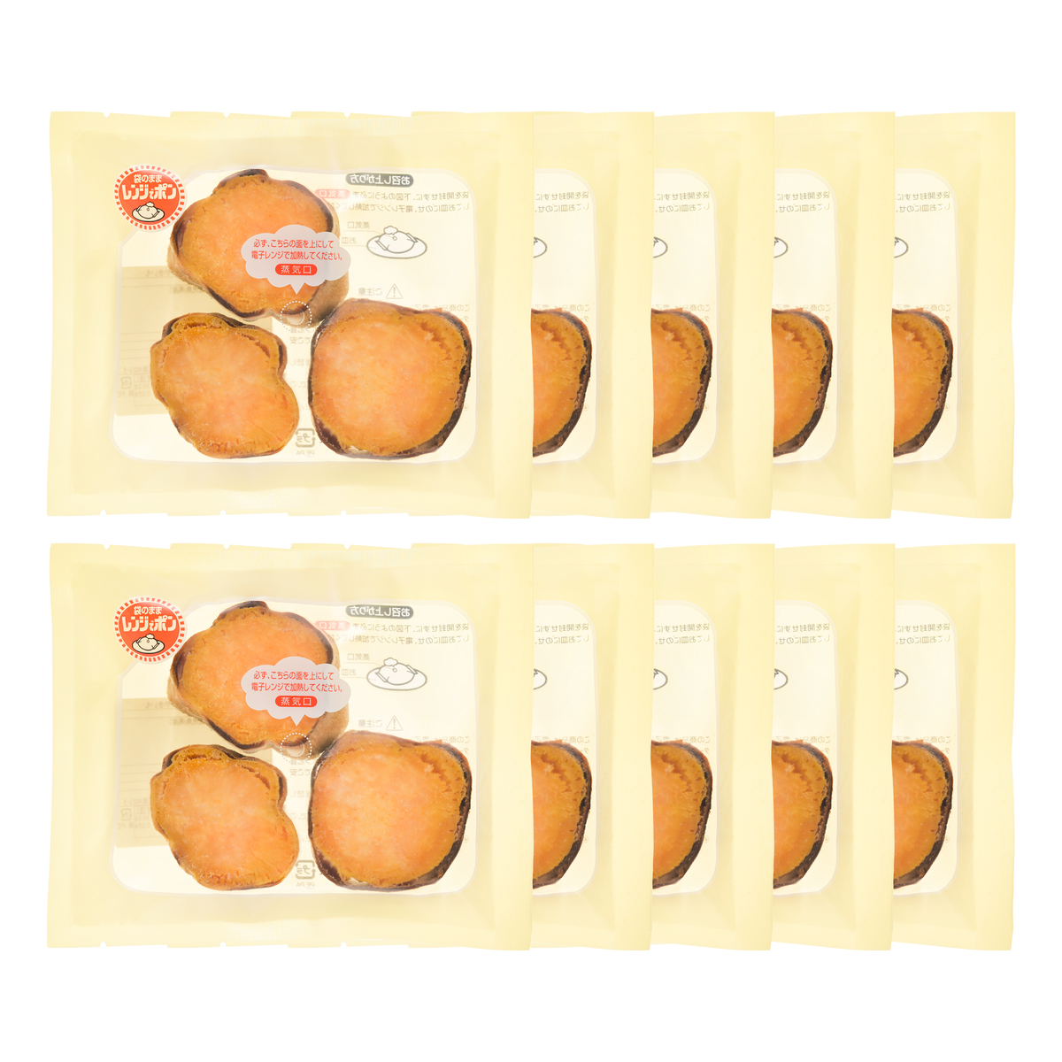 [アレルギー物質特定原材料8品目] なし [内容量] 100g×10袋 [賞味期限] 出荷時点で賞味期限まで35日以上ある商品をお届けします [保存方法] 開封前:冷凍(-18℃以下)で保存してください 開封後:お早めにお召し上がりください [お召し上がり方] 袋のまま電子レンジで温めてお召し上がりください 袋を開封せずに、必ず蒸気口を上にしてお皿にのせ、電子レンジで加熱してください [注意事項] ※この商品は、電子レンジ対応商品です。オーブントースター又は、湯煎での加熱はしないでください ※電子レンジで加熱中、袋はふくらみますが、ポンと音がして「蒸気口」から自然に蒸気が抜けますのでご安心ください ※加熱終了後、蒸気が抜け袋がしぼんだことを確認してから、電子レンジから取り出してください ※加熱後は、袋や中身があつくなっておりますので、ご注意ください ※袋を開封される時、蒸気口より中身が漏れることがありますので、ご注意ください [原料原産地] さつまいも(鹿児島県産) [原産国] 日本 [原材料]さつまいも(鹿児島県産)