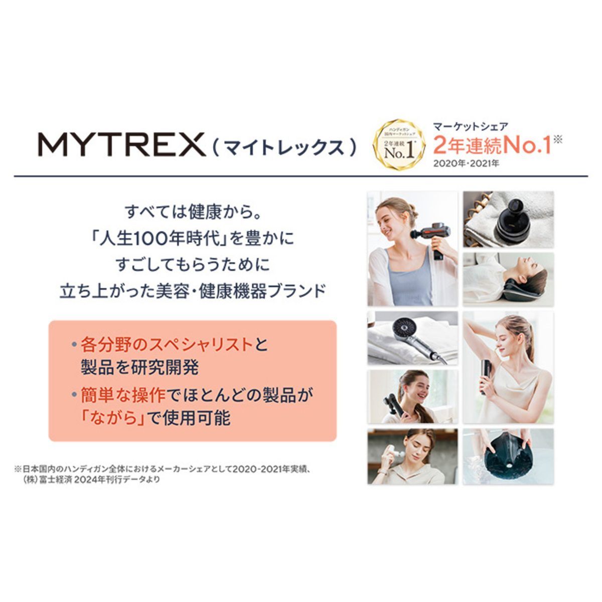 [サイズ] 約11.9×7.4×4.0cm [重量] 約285g [材質] 本体:PC+ABS、アルミニウム合金 アタッチメント:シリコン、アルミ [充電時間] 約2時間30分充電で最長約5時間使用可能 [定格時間] 10分 [注意事項] ※次のような医用電子機器を使用している人は使用しない ・ペースメーカーなど体内植込式医用電子機器 ・人工心肺など生命維持用医用電子機器 ・心電計などの装着型医用電子機器 ※医師からマッサージを禁じられている方は使用しない ※次のような方は医師と相談して使用する 下記に当てはまらない場合でも、ご使用に不安がある方は医師に相談して下さい ・悪性腫瘍のある方 ・心臓疾患、心臓に障害のある方、血栓のある方 ・血行障害、毛細血管拡張、血圧に異常のある方 ・薬を服用中の方、妊娠中の方、出産直後の方 ・糖尿病などによる高度な末梢循環障害による知覚障害のある方 ・肌に傷や湿疹、はれものなど異常ある方 ・安静を必要とする方、四肢の不自由な方 ・発熱している方 ・体調不良、身体に異常を感じている方 ・骨折、骨粗しょう症、脊椎の骨折、ねんざ、肉離れなどの急性疾患(疼痛性)のある方 ・背骨に異常のある方、背骨が曲がっている方 ・医療機関で治療中の方 ・かつて治療や手術を受けたところ、または疾患部へ使用する方 ・体力が極端に衰えた方 ・自ら意思表示ができない方や操作が行えない方 ・神経障害、皮膚知覚障害、アレルギー体質、皮膚病、アトピー性皮膚炎、敏感肌の方 ※眼球および目の周り、心臓付近、首の前方、結石のある部位には使用しない ※次のようなときは使用しない ・疲労が激しい時 ・飲酒後 ・食前、食後の1時間 ・睡眠中 ・皮膚に異常のある時 ※肌の弱い方は素肌で使用しない ※他の機器と同時に使用しない ■取り扱い説明を充分にご確認の上、ご使用下さい 【中国製】 [使用方法] <充電方法> 1.本体底面の充電ポートに、付属の充電用USBコードのType Cコネクター側を接続する 2.USBコードのTypeCコネクター側をお手持ちのACアダプター等のUSBポートに接続する 3.充電完了になったら、USBケーブルを取りはずす <使用方法> 1.電源がオフになっていることを確認して、アタッチメントを取り付ける 2.電源/スピード調整ボタンを長押し(約3〜5秒)して電源をオンにする 3.電源ボタンを押して、振動スピードを選ぶ 4.本体上部のストローク調整ダイヤルを回して、ストロークを選ぶ 5.ハンドル部分をしっかりと手で持ち、肌に軽く当てて使用する 6.使用中に振動を停止するには、電源ボタンを長押し(約3〜5秒)する ※使い始めから10分経つと、自動的に振動が停止します 7.使用後、アタッチメントを取りはずす [お手入れ] ・本体、アタッチメント、およびUSBコードは絶対に水洗いしないで下さい(スカルプ拡張アタッチメントのみ水洗い可) ・アルコール・シンナー・ベンジンなどの溶剤は使用しないで下さい