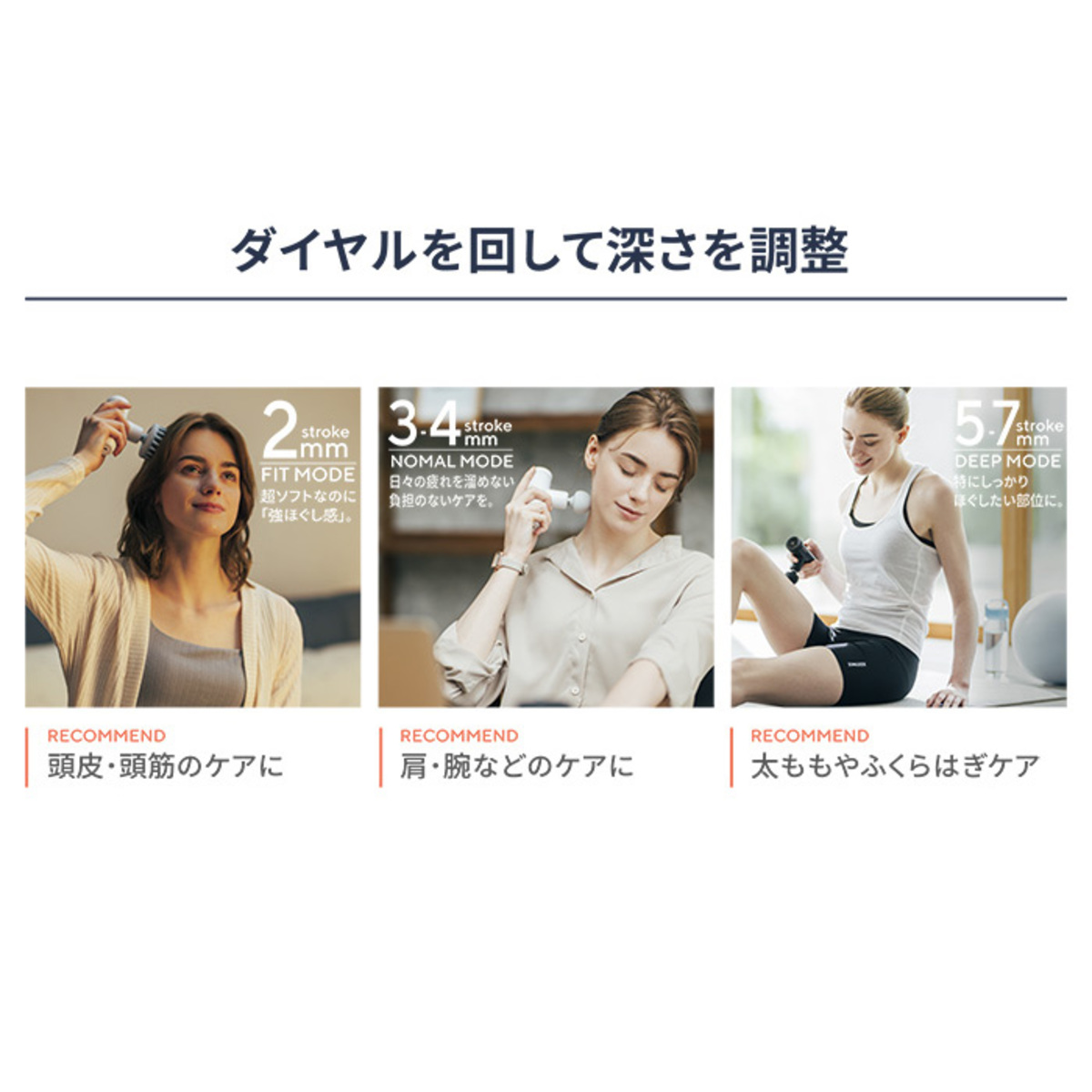 ・2〜3mm:首肩まわりなどの繊細部位、関節まわりのケアに