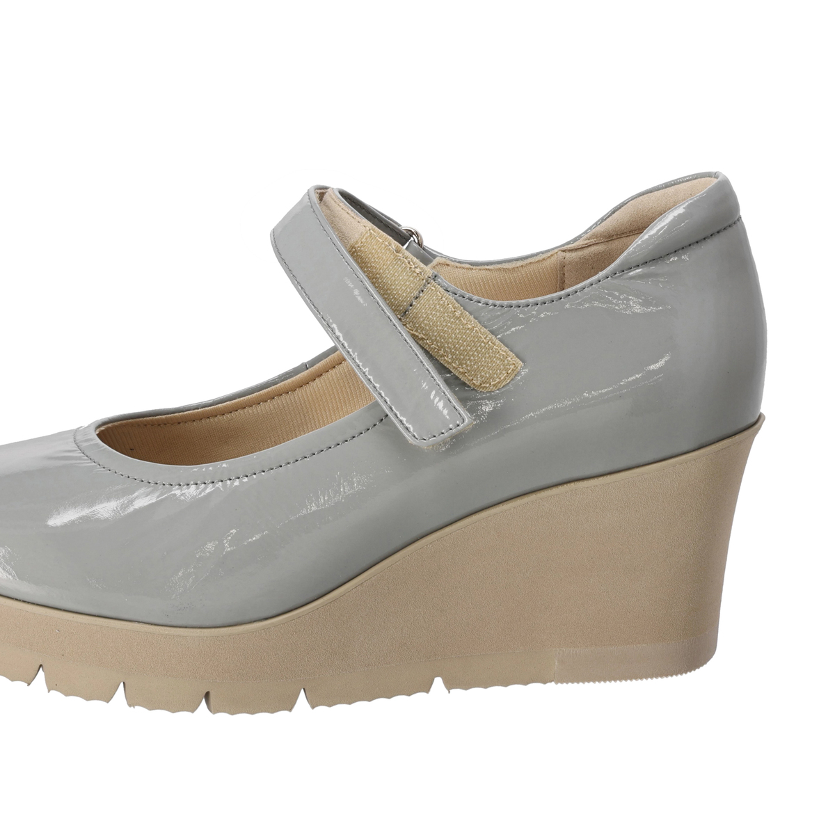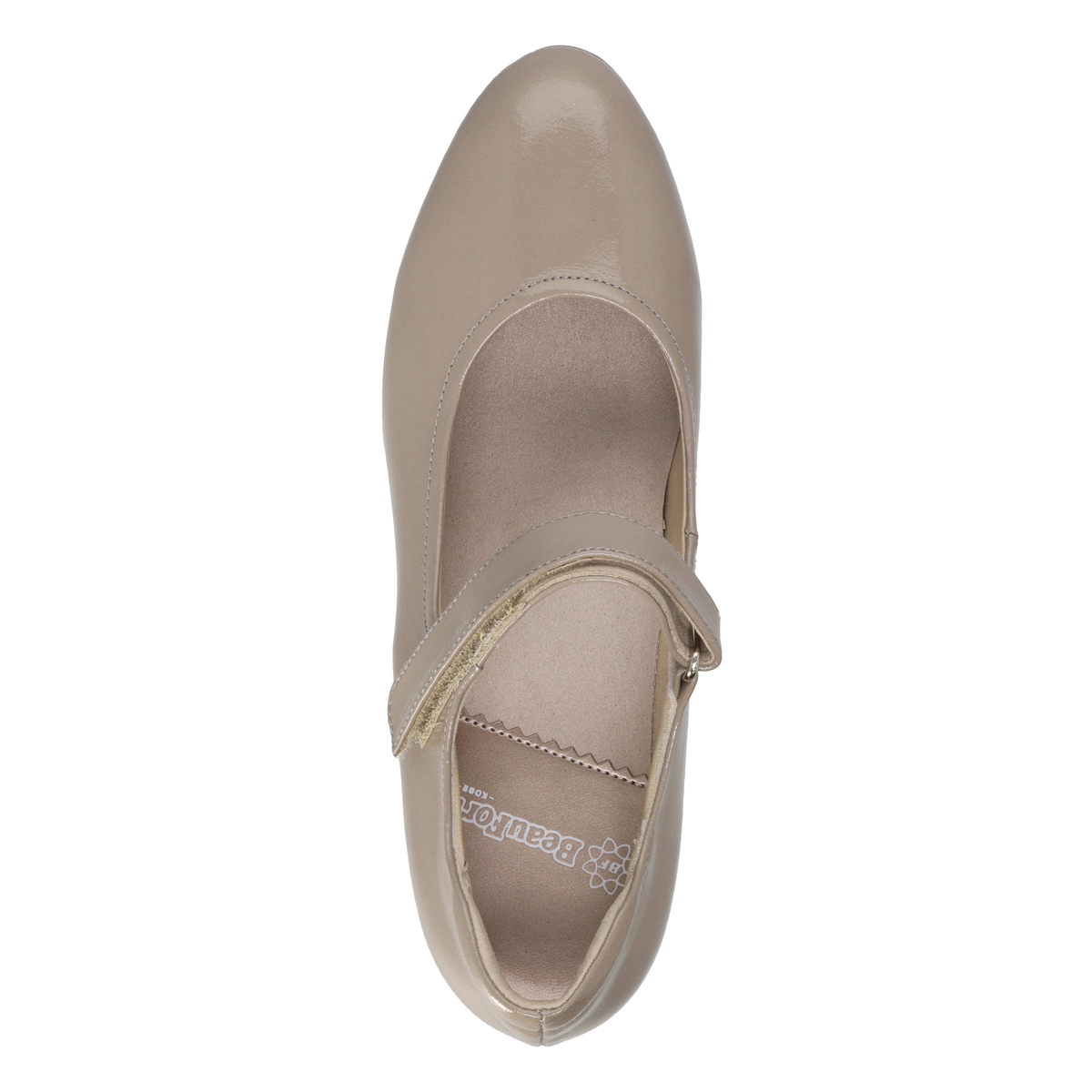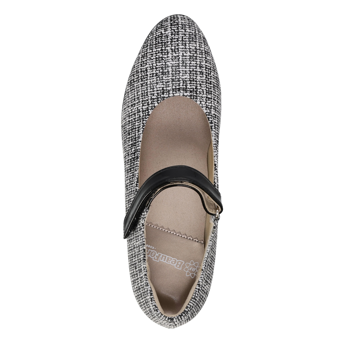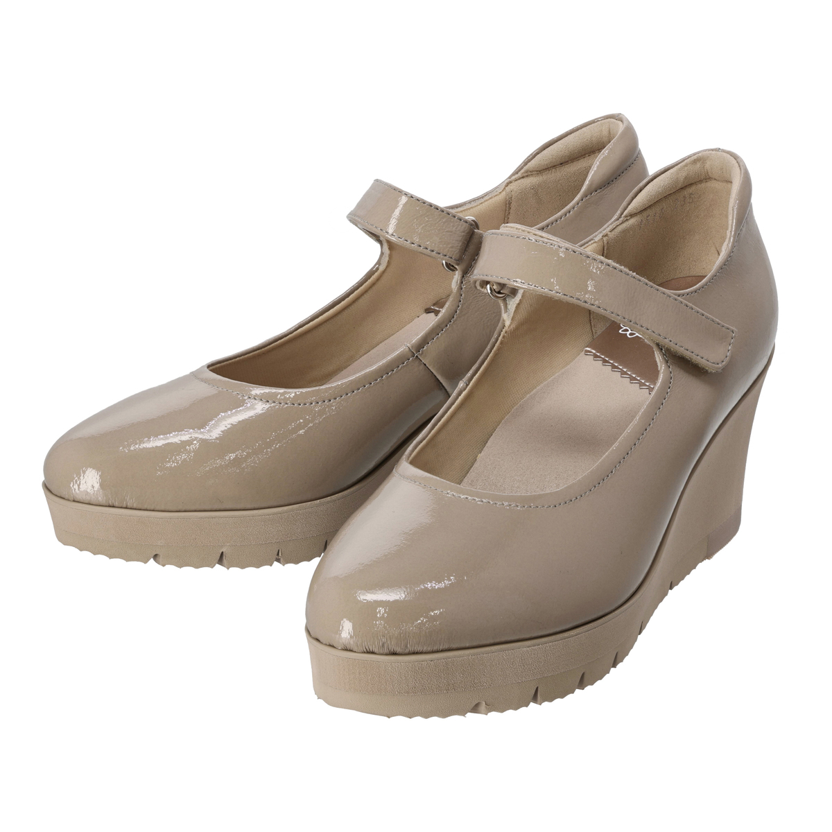 [重量(約)]270g(23.5cm 片方) [ソール厚さ(約)]2.5cm [ヒール高さ(約)]7.0cm [ワイズ]3E [材質] <外側> エナメルブラック、エナメルベージュ、エナメルブルーグレー:牛革 ツイードブラック:豚革、牛革 <インソール> 合成皮革 <アウトソール> 合成ゴム [お手入れ] ※エナメル素材部分には防水・撥水スプレーをしないようにしてください(該当カラー:エナメルブラック全体、エナメルベージュ全体、エナメルブルーグレー全体、ツイードブラックのベルト部分のみ) 【日本製】
