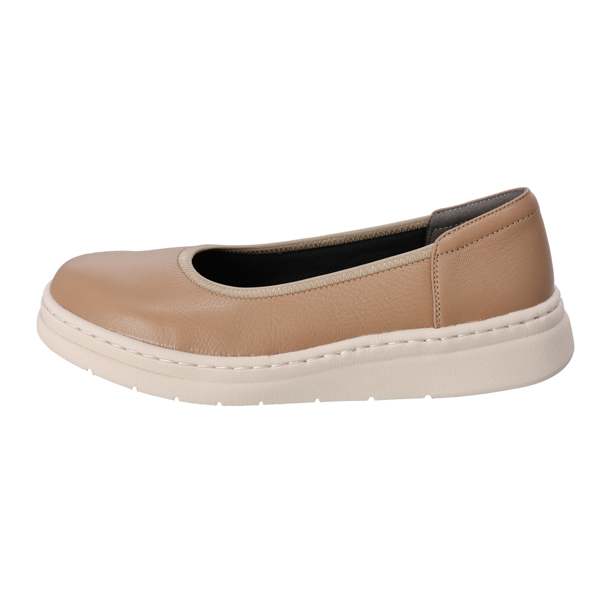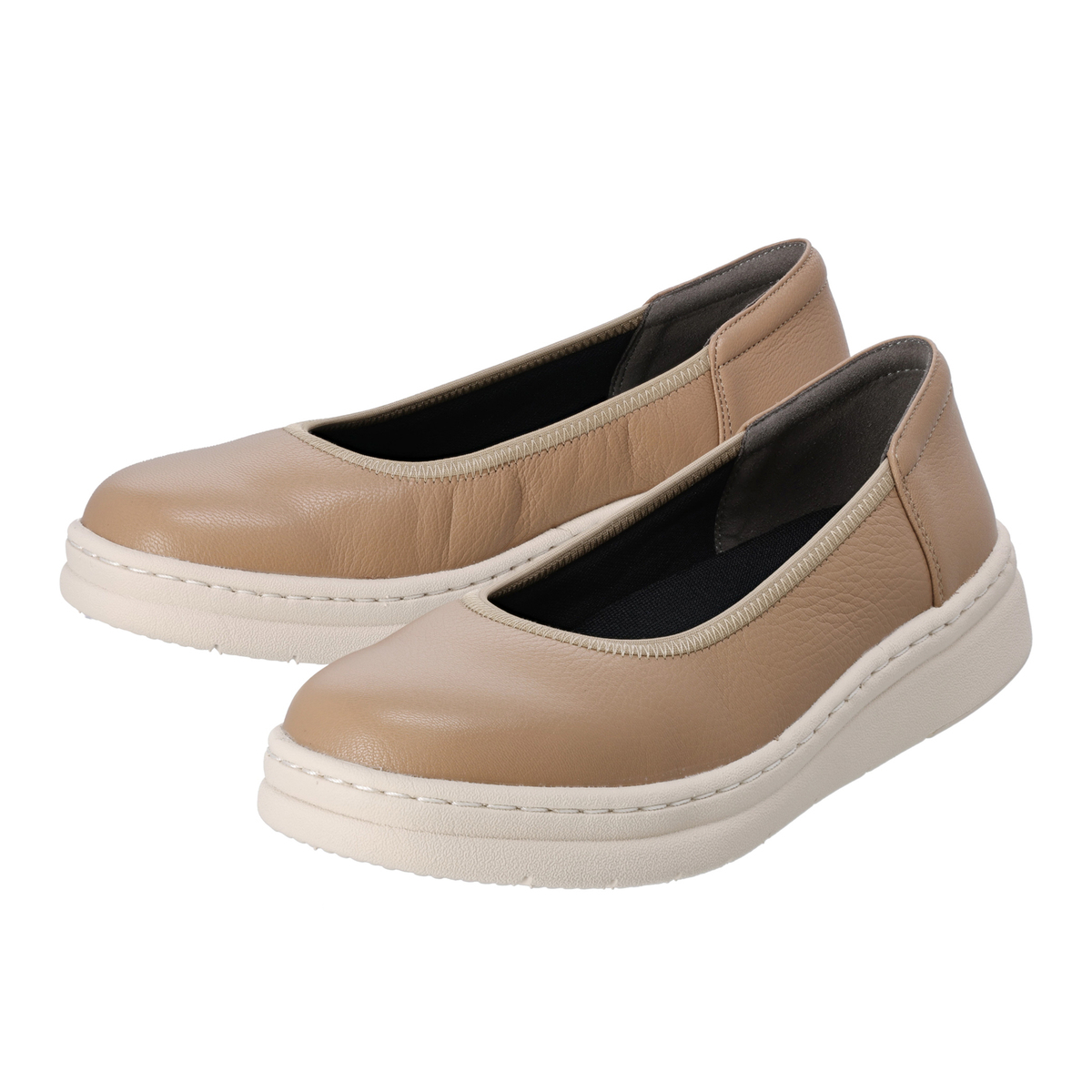 履き口部分にゴムが入り、脱ぎ履きしやすいカッターパンプス。革の特性の塑性と弾性が損なわれることのない、甲革を吊り込まない袋縫い製法で足を優しくしっかりと包み込みます。甲裏にはメッシュ素材を使用することで、足あたりが柔らかく、通気性もあります