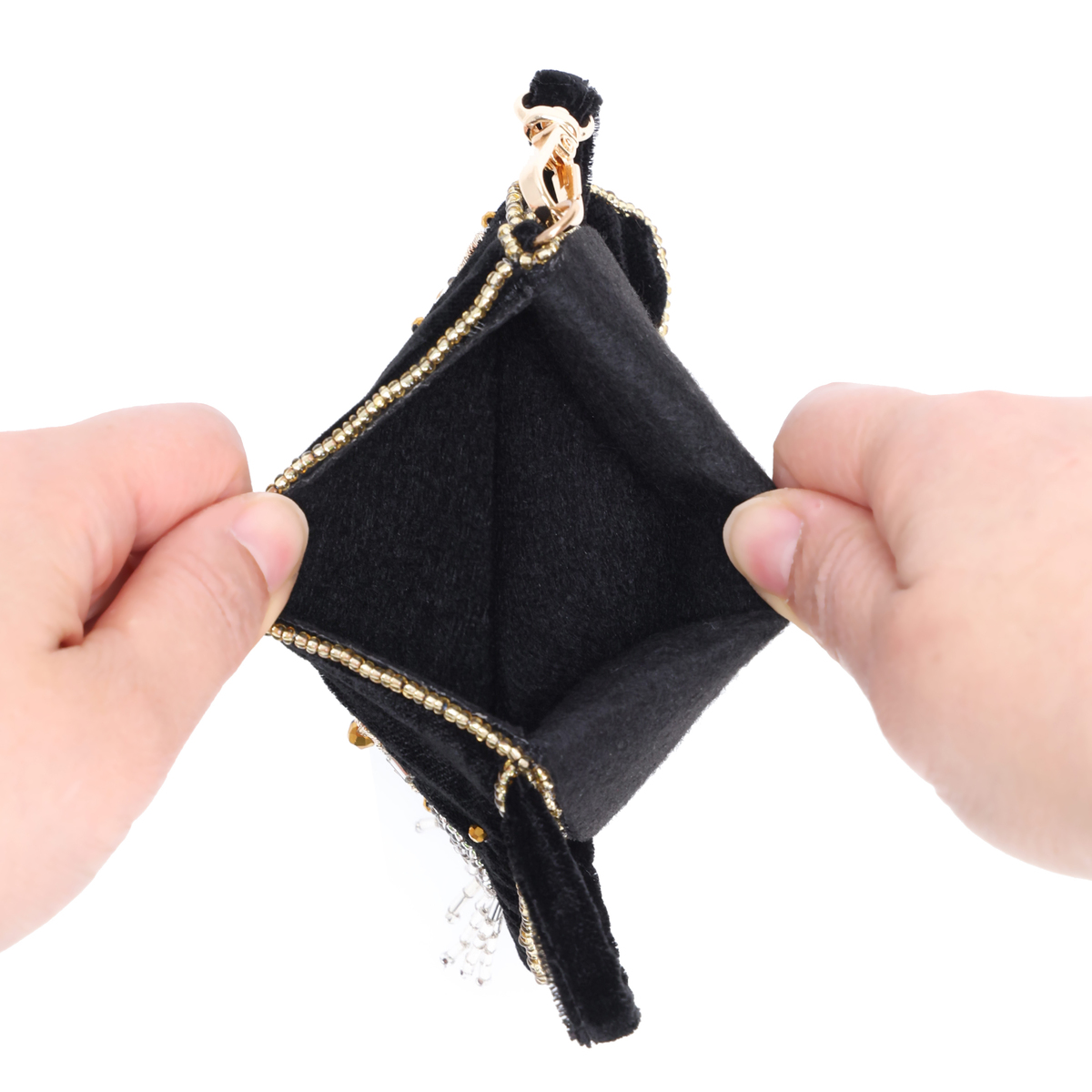 [サイズ(約)] 縦9.4×横12.1×厚み0.9cm ハンドル立ち上がり:6.0〜8.8cm(個体差があります) [重量] 約37.6g [材質] 合成繊維、ガラスビーズ、留め金具(合金+金色メッキ)、フック金具(合金+ローズゴールドカラーメッキ) [留め具]マグネット ■素材の大きさ・形・色合い、製品のサイズは1点1点多少異なります 【中国製】