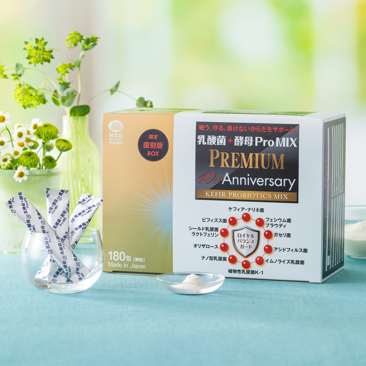 こだわりの成分をバランスよく配合した「乳酸菌+酵母ProMIX」。QVCデビュー10周年記念バージョンです