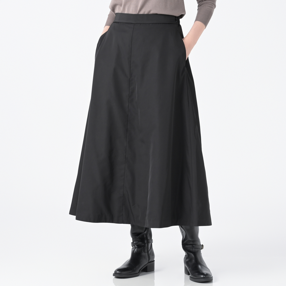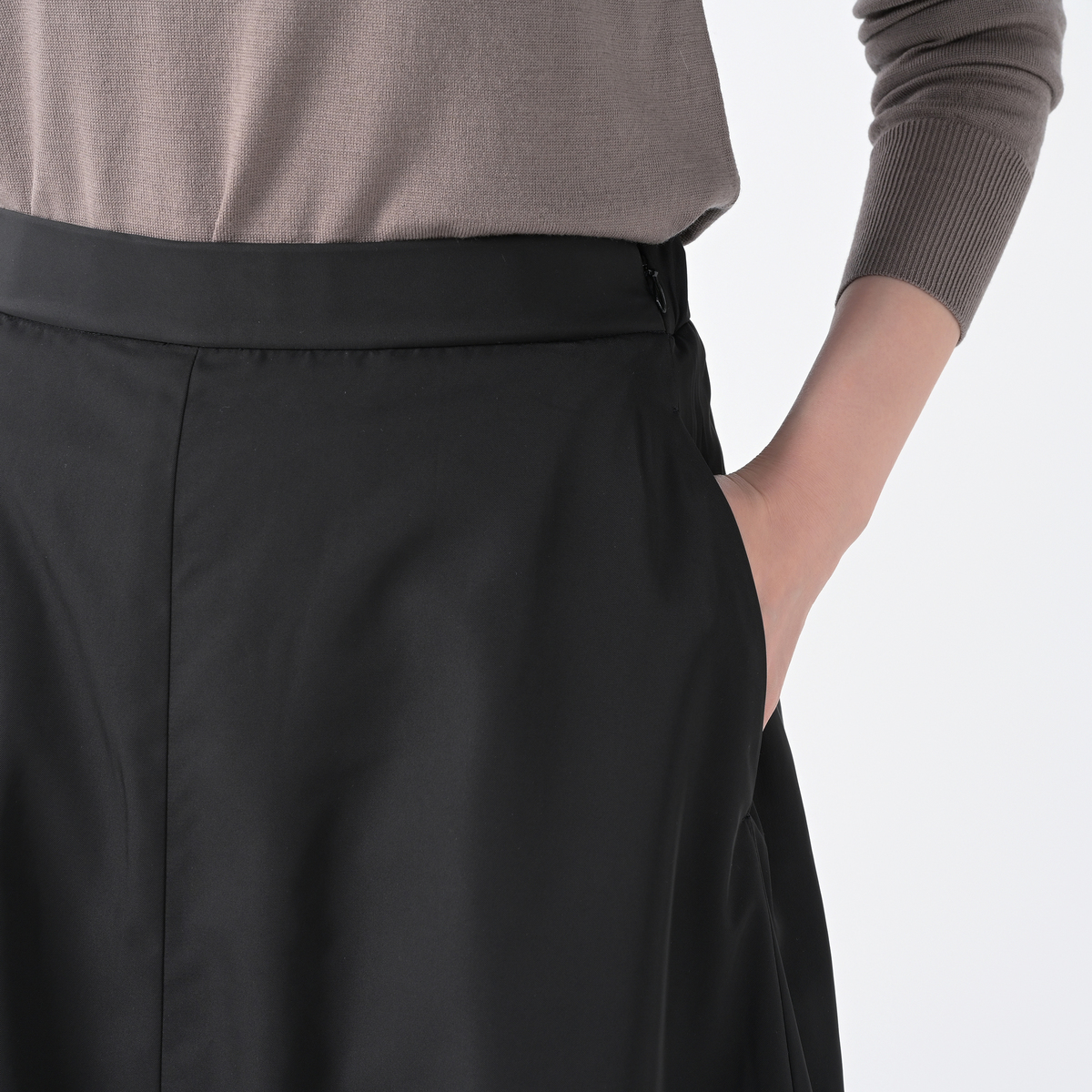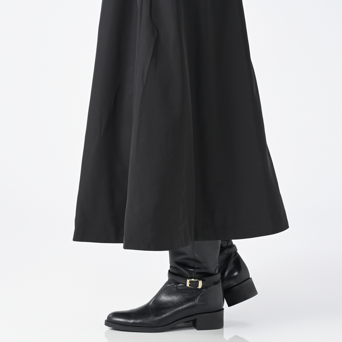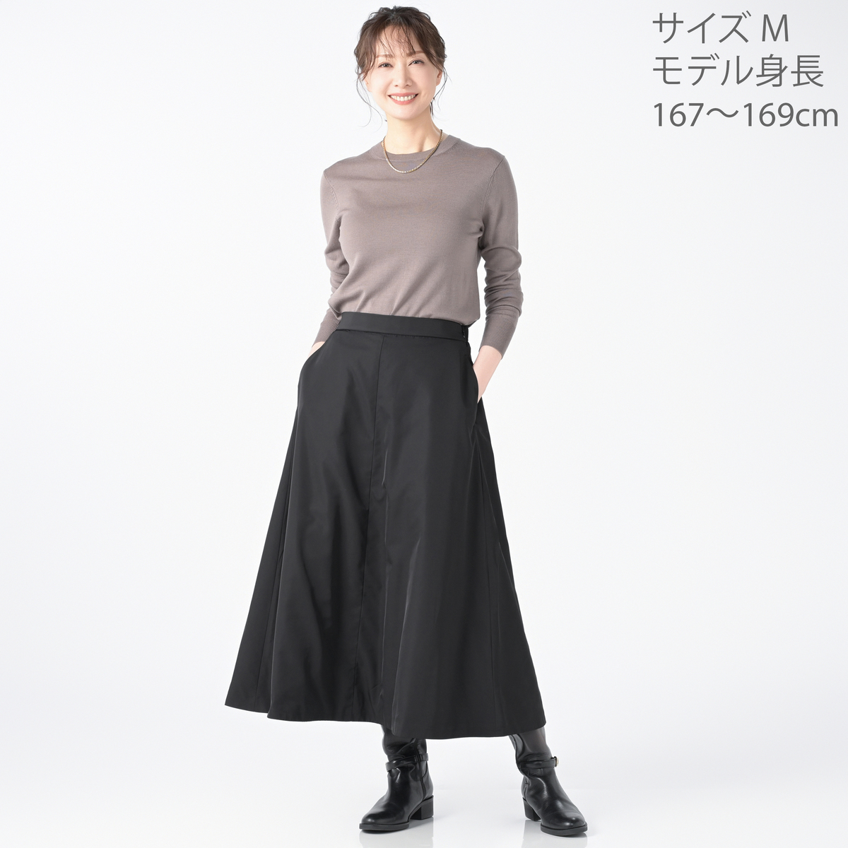 穿くだけで上品に決まるフェミニンなフレアシルエット。ウエストは後ろがゴム仕様で着心地良く仕上げました