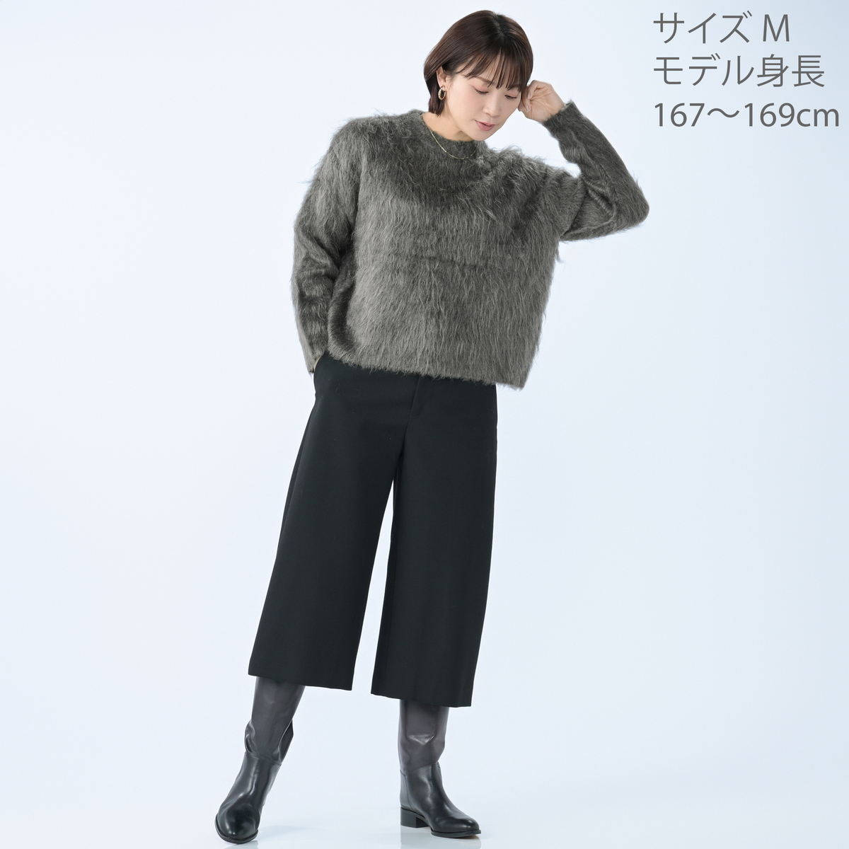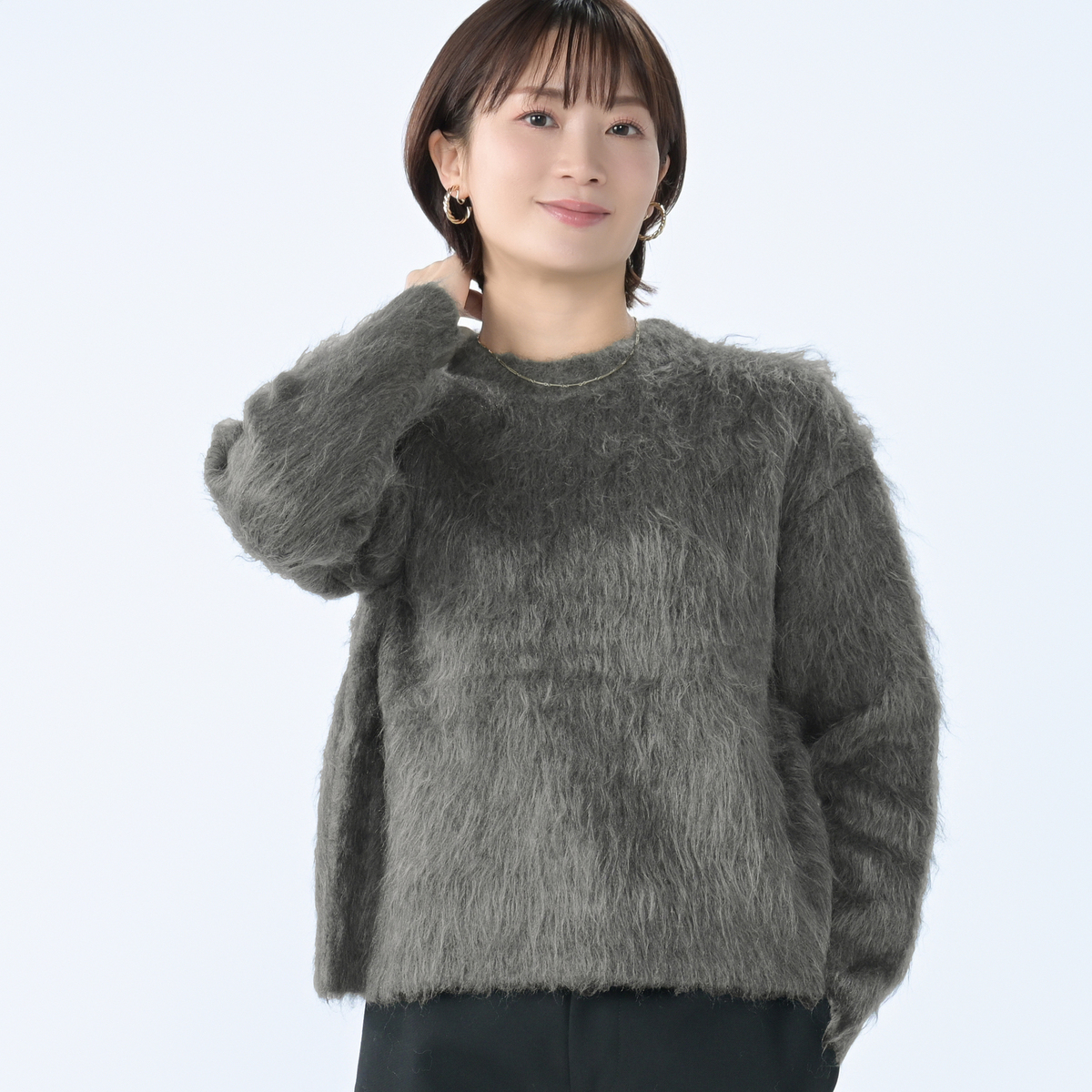アルパカシャギーのクルーネックプルオーバー。ワイドシルエットのクロップド丈でどんなボトムともバランスがとりやすく、合わせやすく。着るだけでトレンド感とシーズンムードを感じさせるニットです