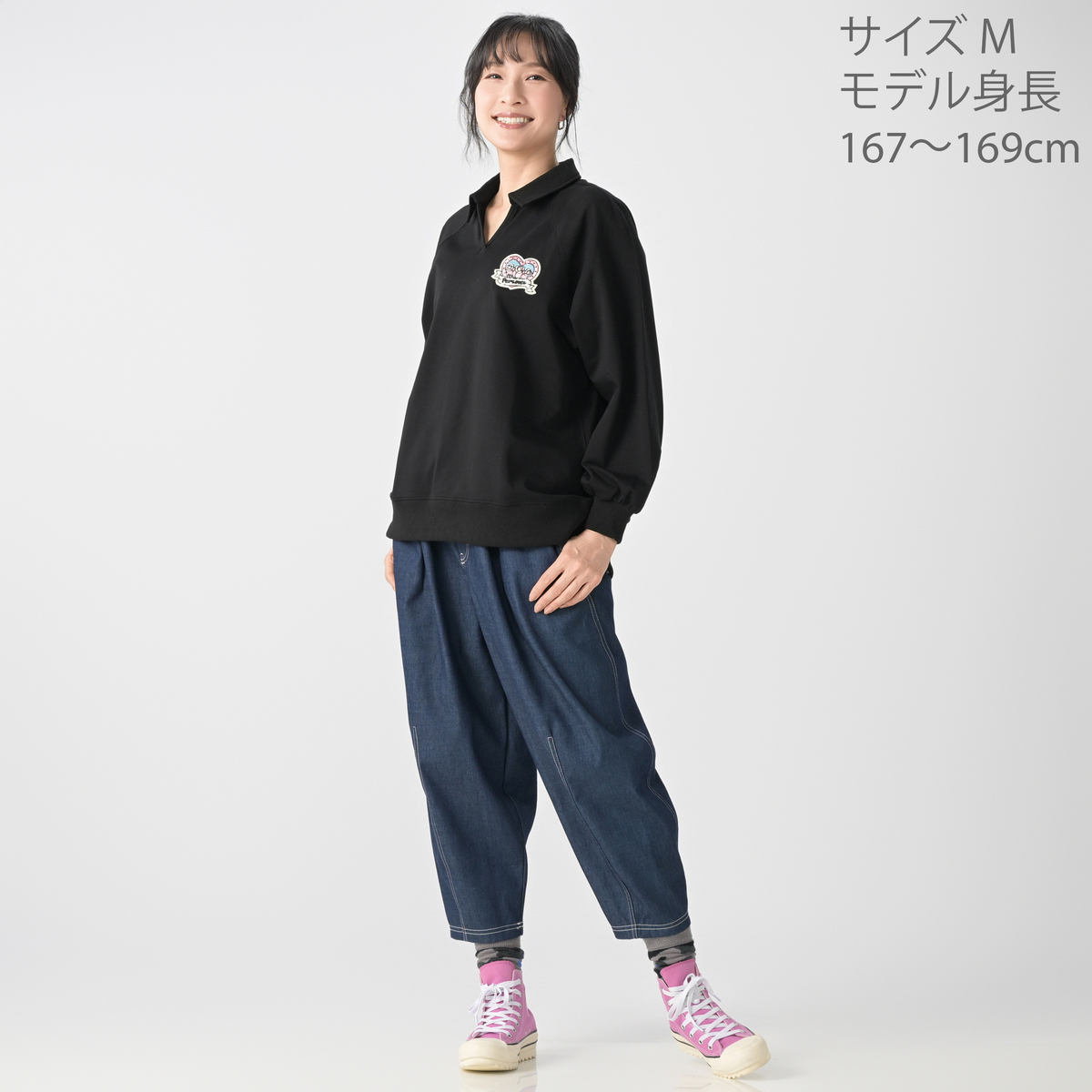 ラグランスリーブのデザインで、動きやすくゆったりした着心地。スキッパー衿が上品な印象をプラスし、カジュアルにもきれいめにも着こなせます