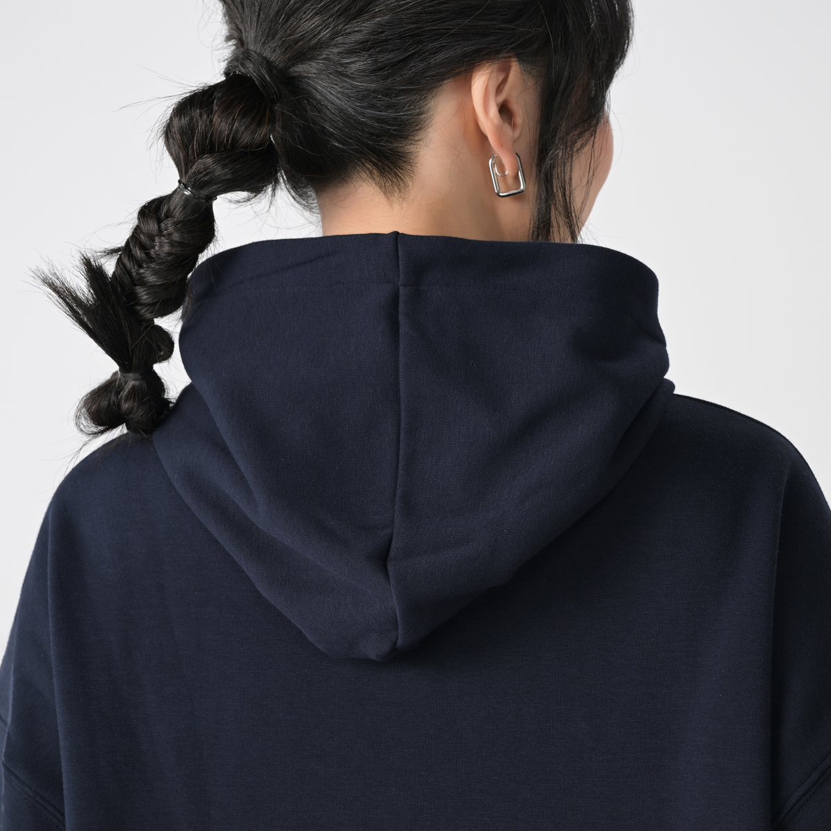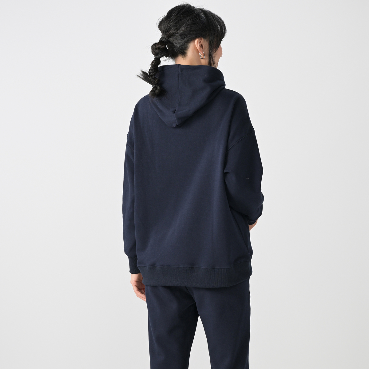 裏起毛素材を使用したプルオーバーデザインのパーカー。長めの丈でお腹やヒップ周りをしっかりカバーし、寒い季節も快適に。ドロップショルダーのゆったりシルエットで、若々しい着こなしを楽しめます