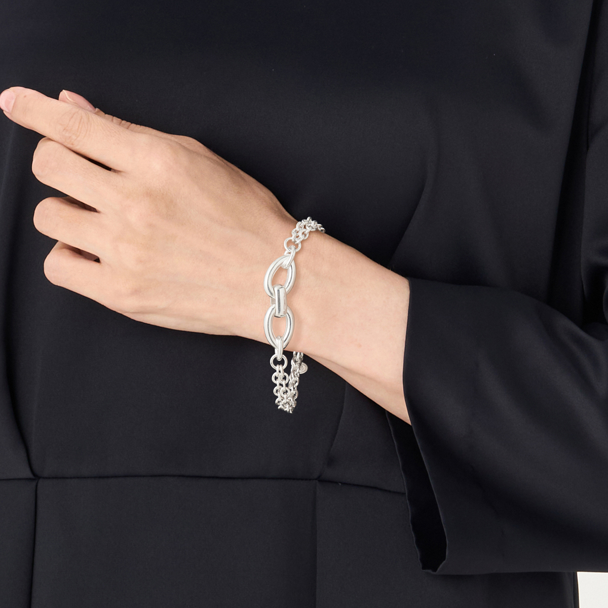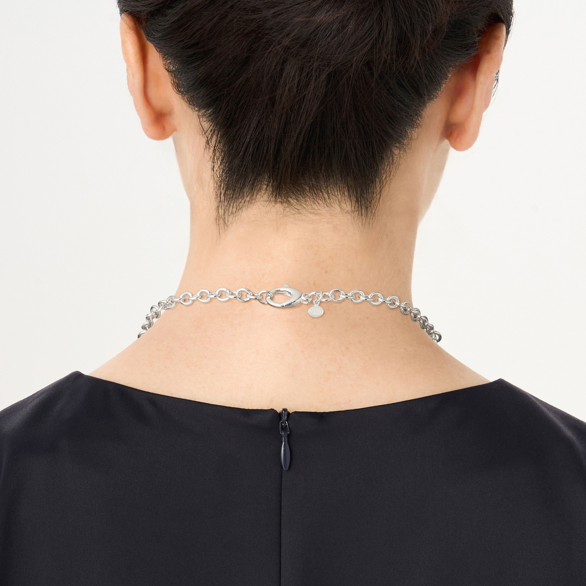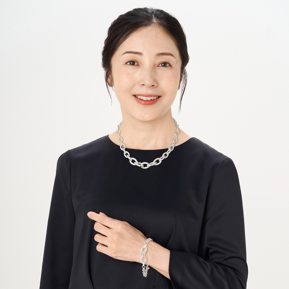 ボリューム感のある艶やかな輝きが魅力のネックレス&ブレスレットセット。ネックレスはオーバルとティアドロップ型のパーツを贅沢に組合せたデザインで、力強さと優美さを兼ね備えています。カジュアルにもフォーマルにも映える存在感で、装いに華やぎを添えるアイテムです