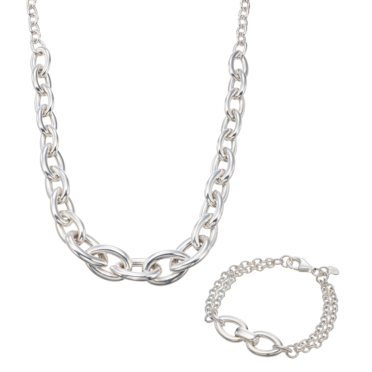 [地金] シルバー925 <ネックレス> 総重量(約) 37.5g 長さ(約) 44.0cm 幅(約) 大:14.5mm 小:5.5mm チェーンの形状 デザイン 留具の形状 ロブスター アジャスターの有無 無 <ブレスレット> 長さ(約): 19.0cm 幅(約): 大:11.5mm 小:4.0mm 総重量(約): 9.3g チェーンの形状 :デザイン 留具の形状 :ロブスター アジャスターの有無: 無 チャームの有無 :無 [付属品] 磨きクロス ■素材の大きさ・形・色合い、製品のサイズは1点1点多少異なります ■中空製品のため、強い衝撃を与えますと破損や変形の恐れがありますのでご注意ください 【イタリア製】